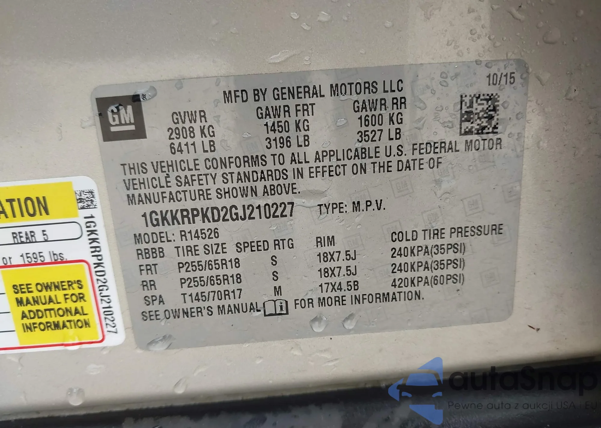LOT: 42743947 VIN: 1GKKRPKD2GJ210227