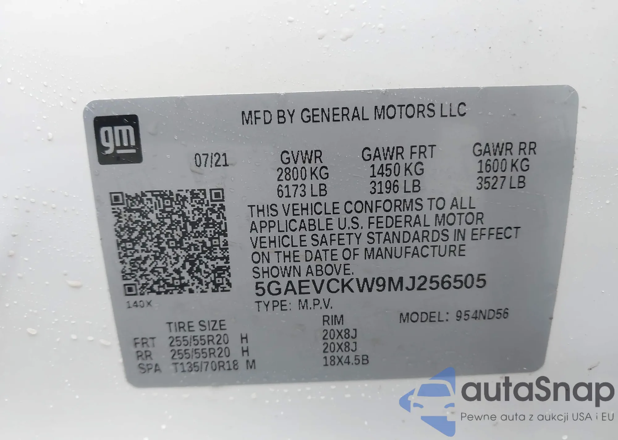 • VIN 5GAEVCKW9MJ256505