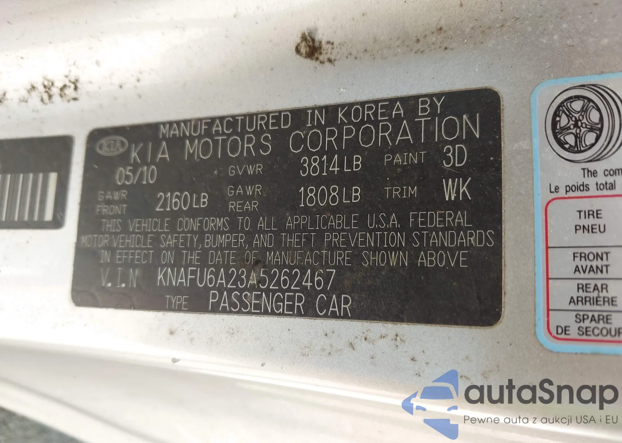 LOT: 42567981 VIN: KNAFU6A23A5262467