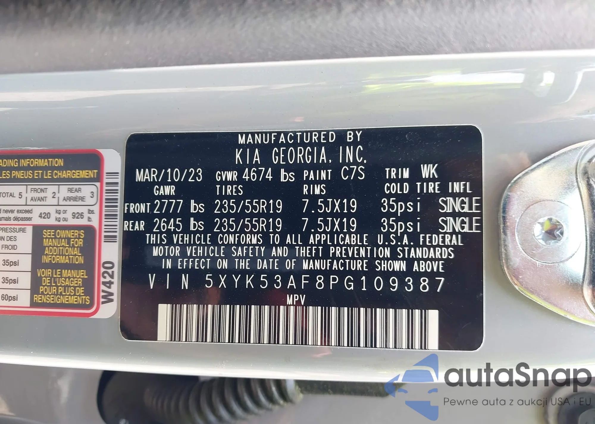 • VIN 5XYK53AF8PG109387