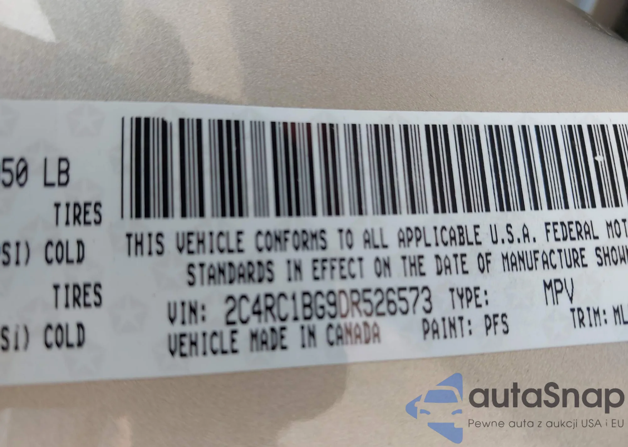 LOT: 42725136 VIN: 2C4RC1BG7DR556381