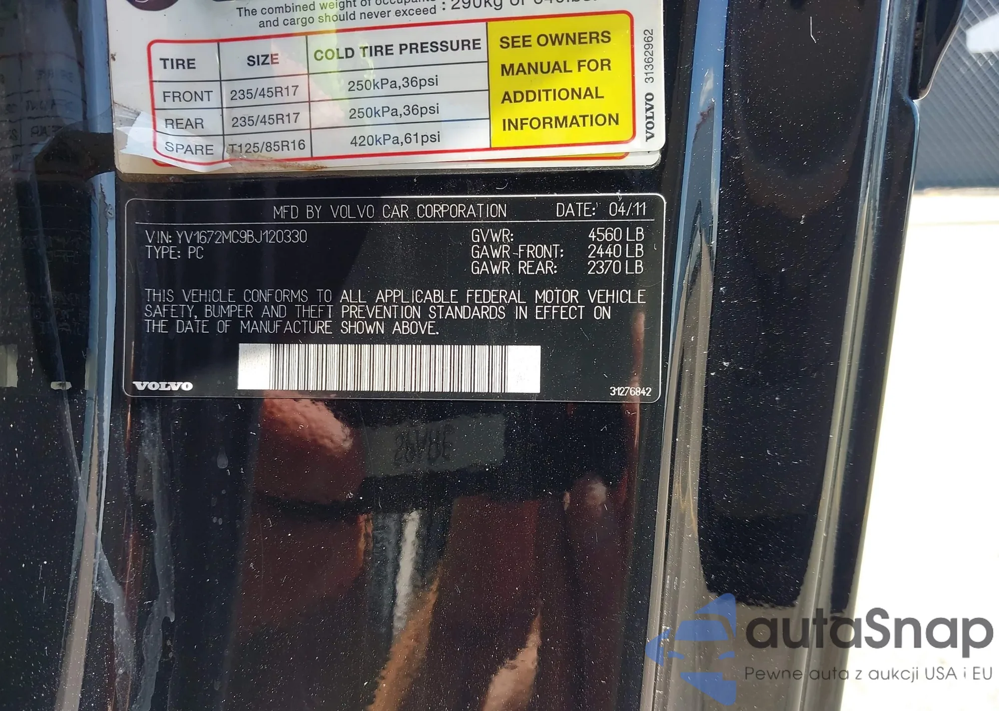 • VIN 1HGCP2F67CA156102