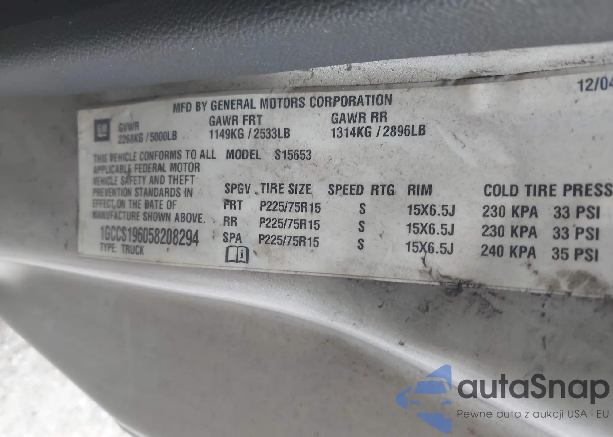 • VIN 1GCCS196058208294