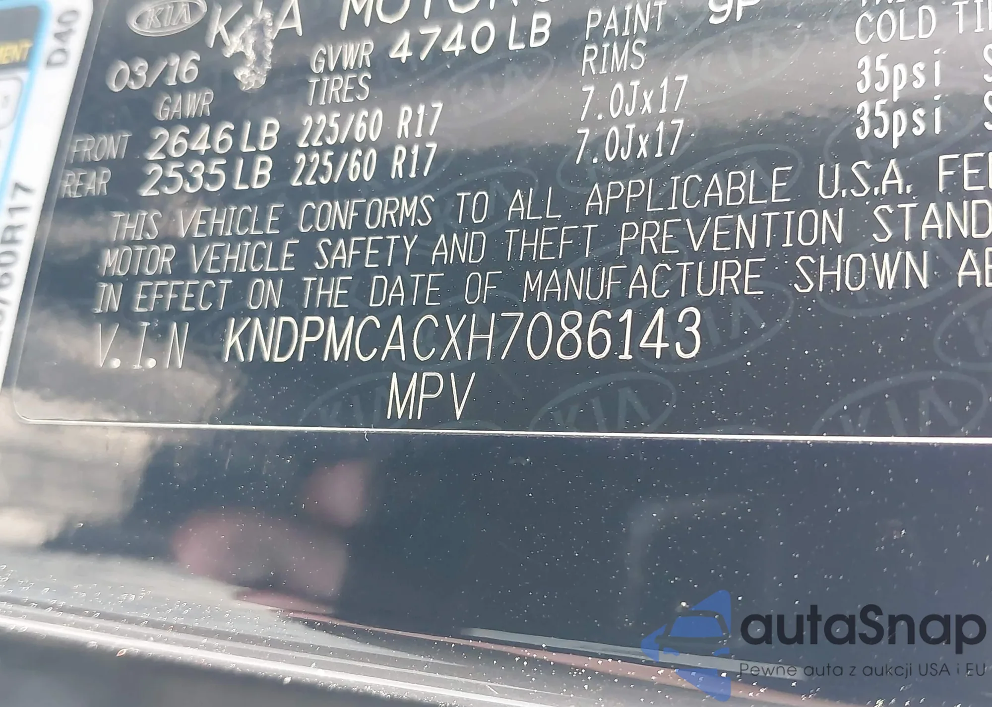 • VIN KNDPMCACXH7086143