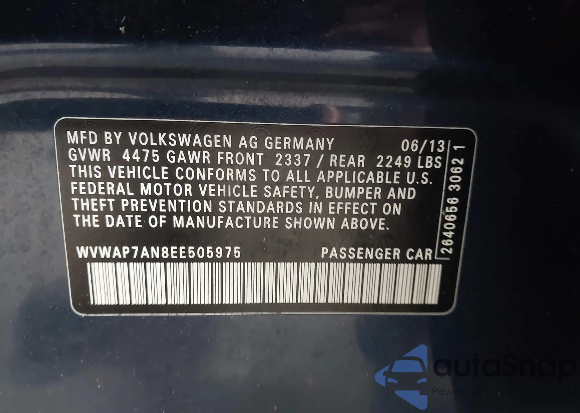 • VIN WVWAP7AN8EE505975