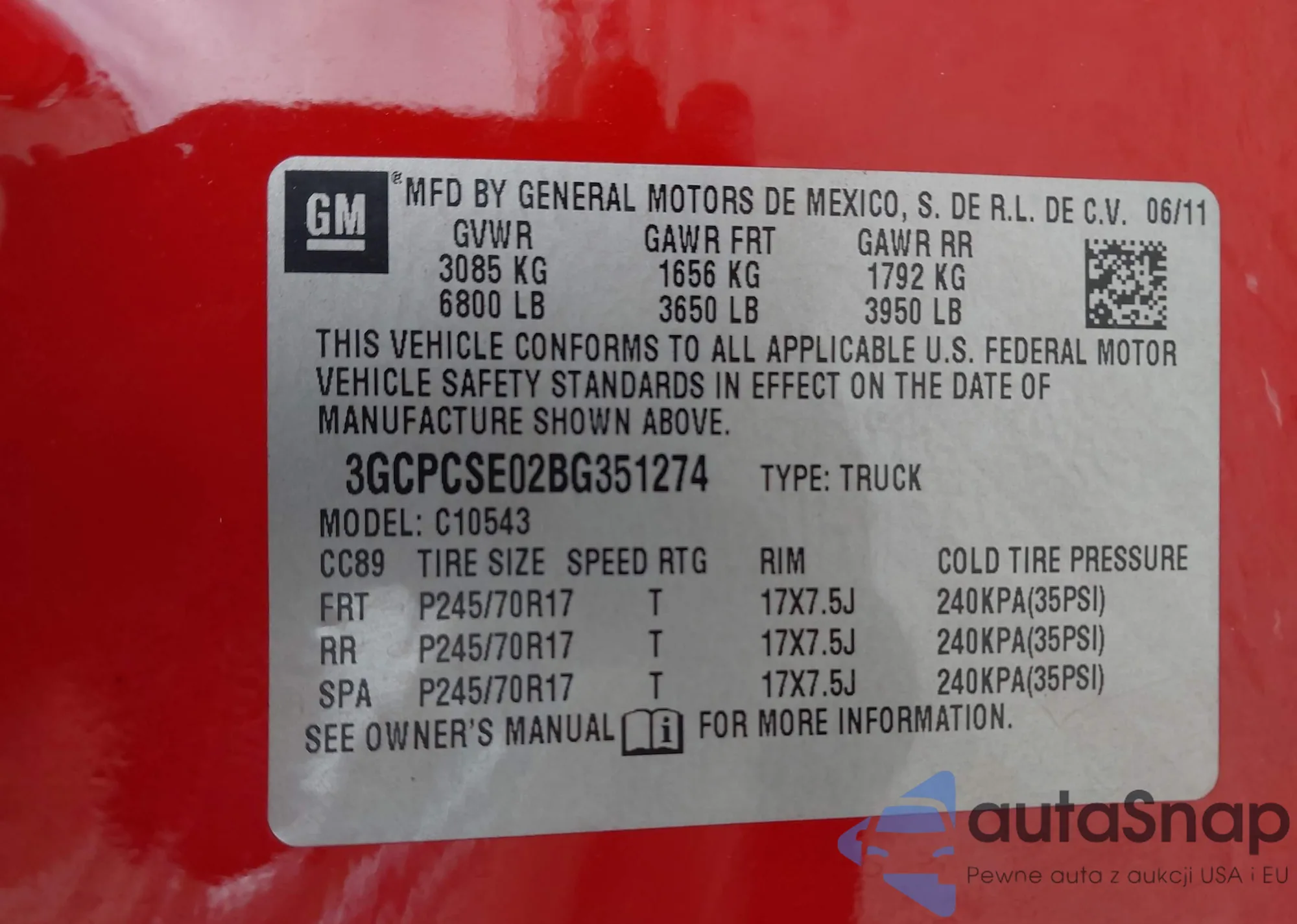 • VIN 3GCPCSE02BG351274