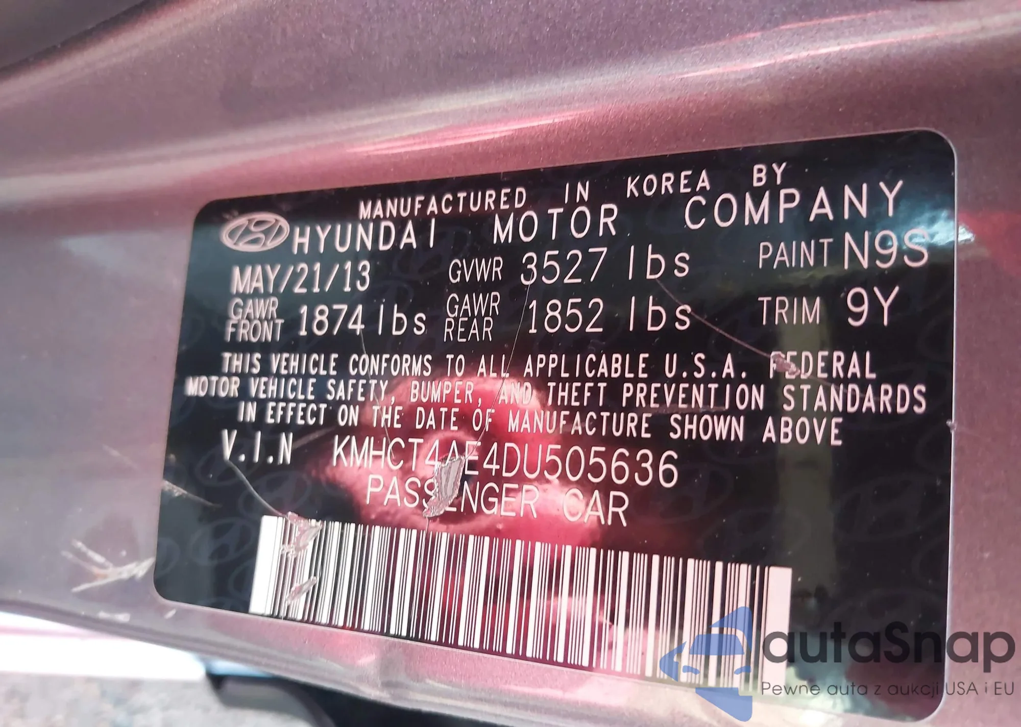 LOT: 42695944 VIN: KMHCT4AE4DU505636