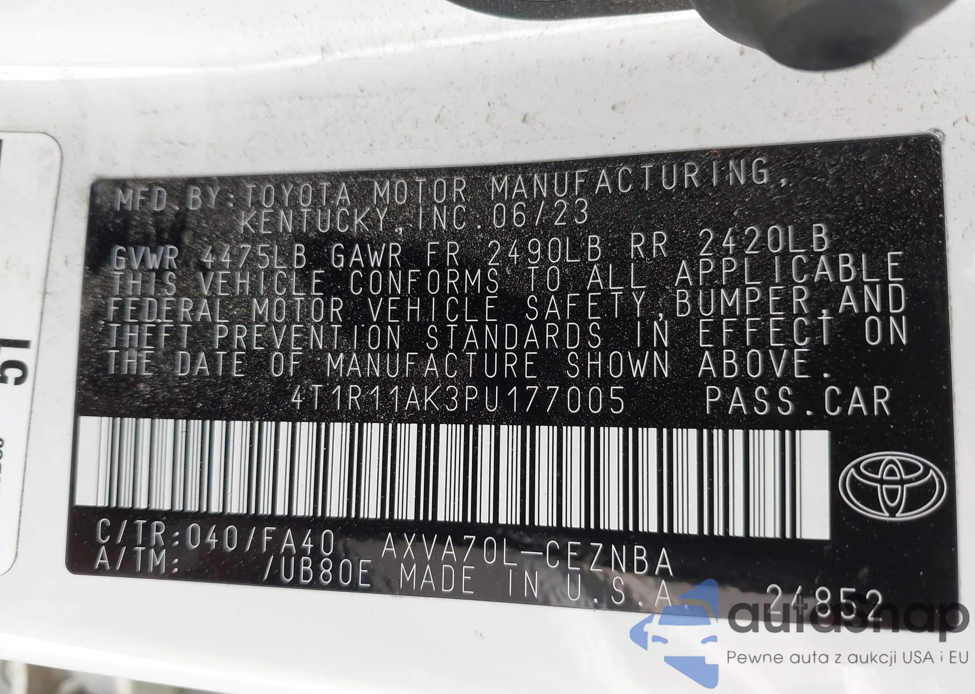 • VIN 4T1R11AK3PU177005