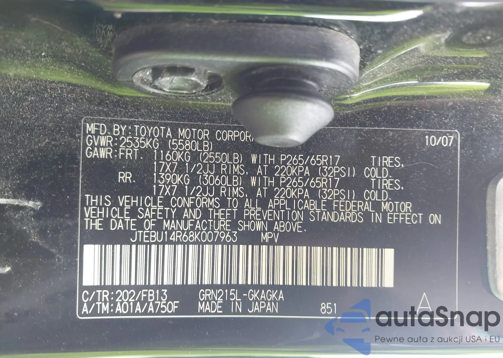 LOT: 42746744 VIN: JTEBU14R68K007963