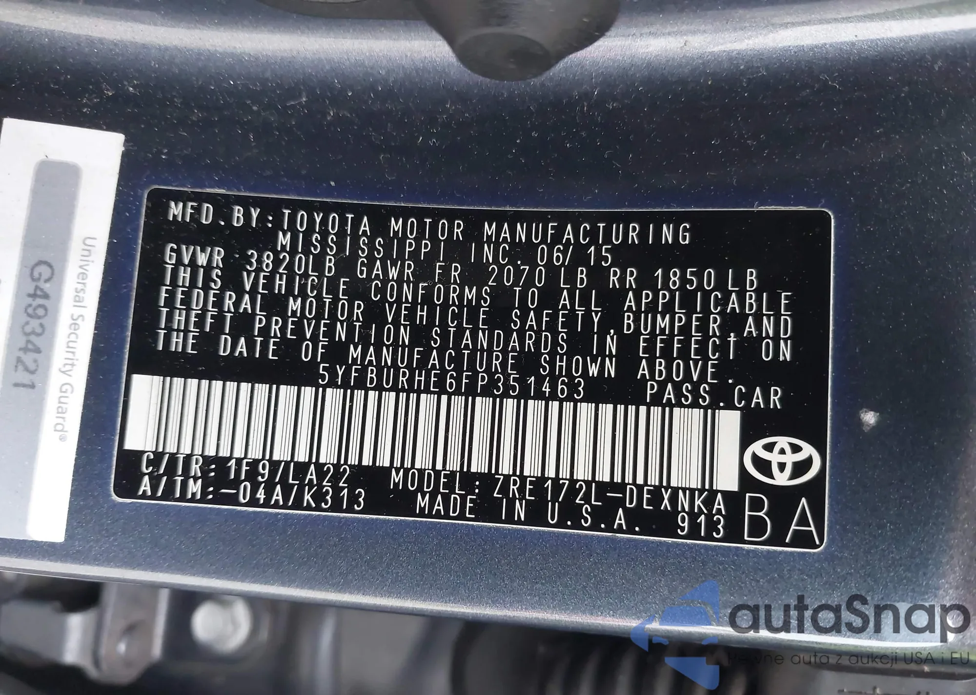 • VIN 5YFBURHE6FP351463