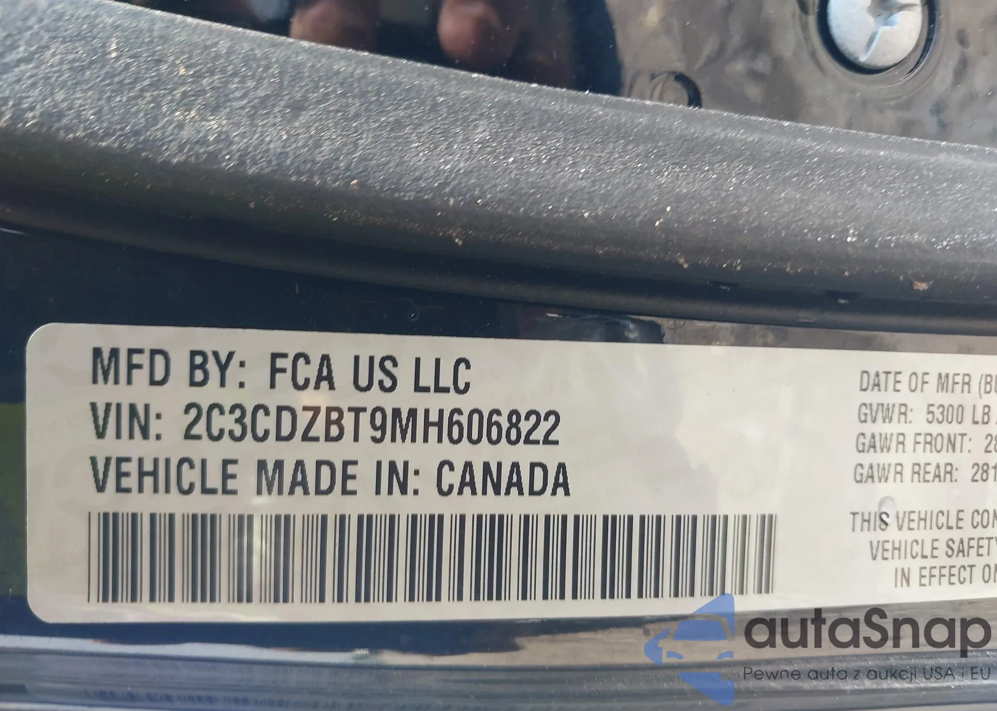 • VIN 2C3CDZBT9MH606822