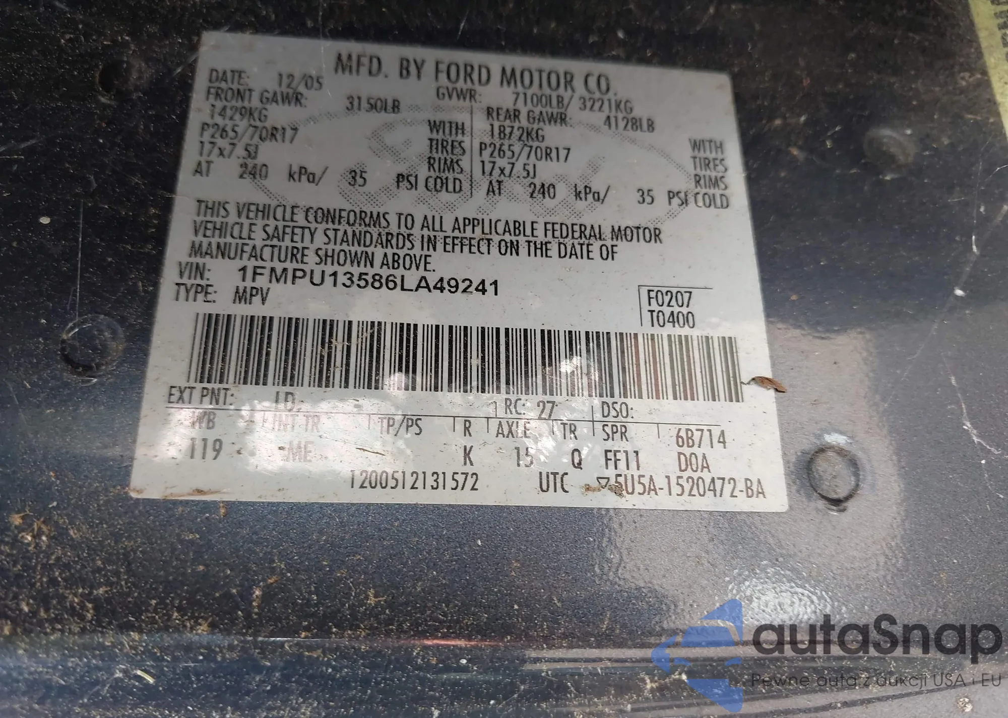 • VIN 1FMPU13586LA49241