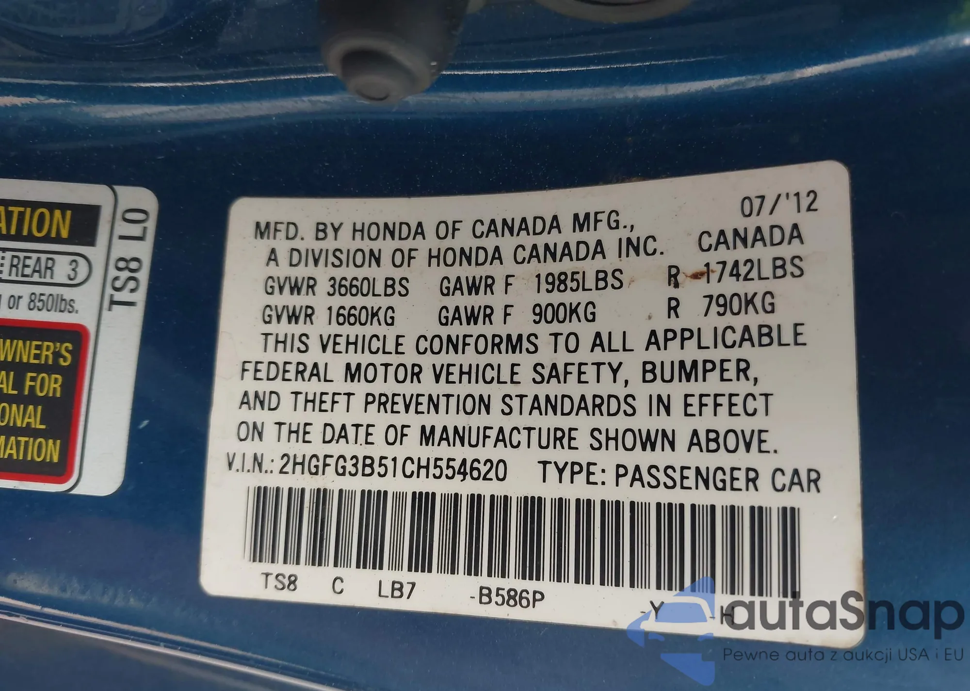 • VIN 2HGFC2F69KH555327