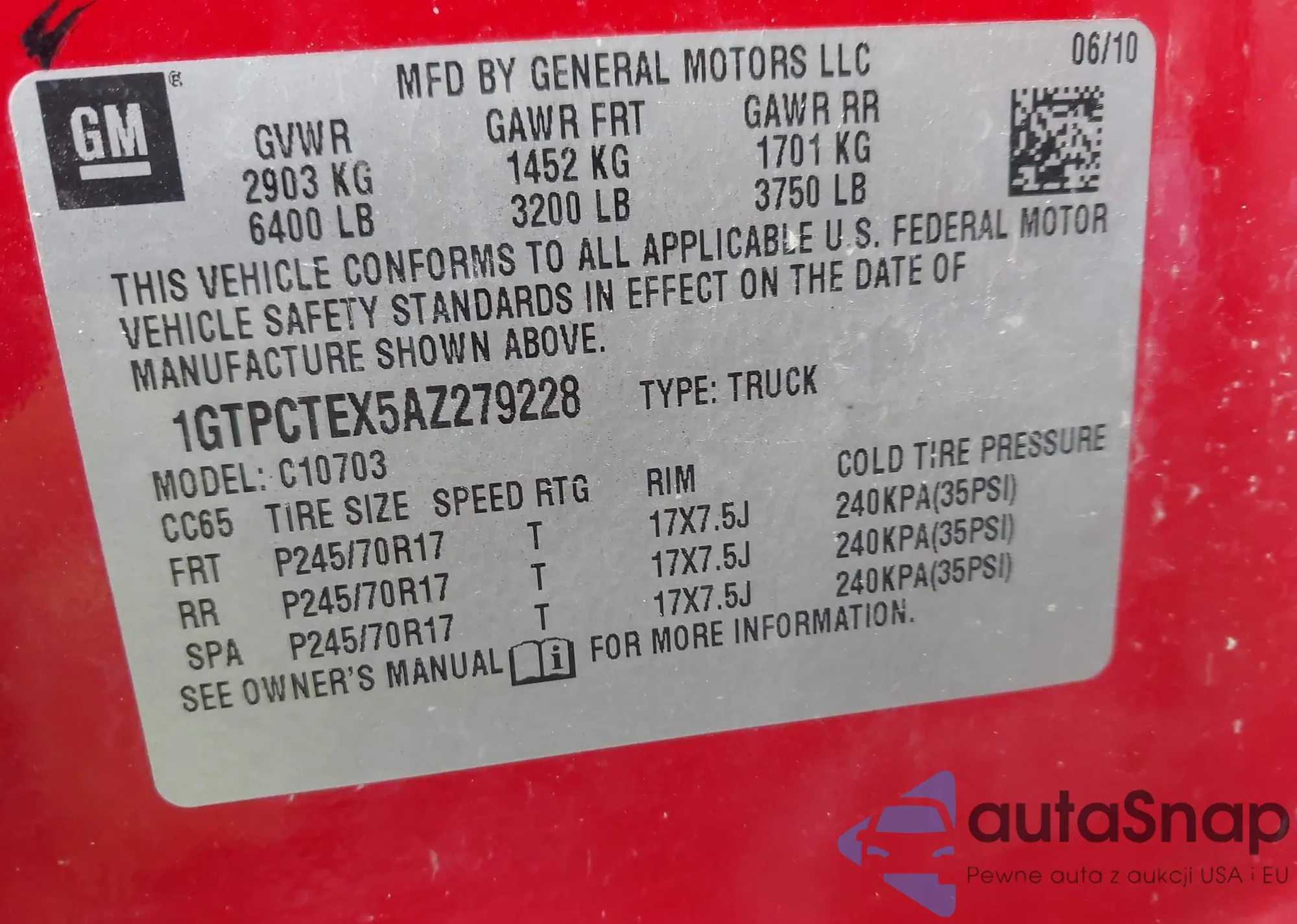 • VIN 1FTFW1EV3AFA72859