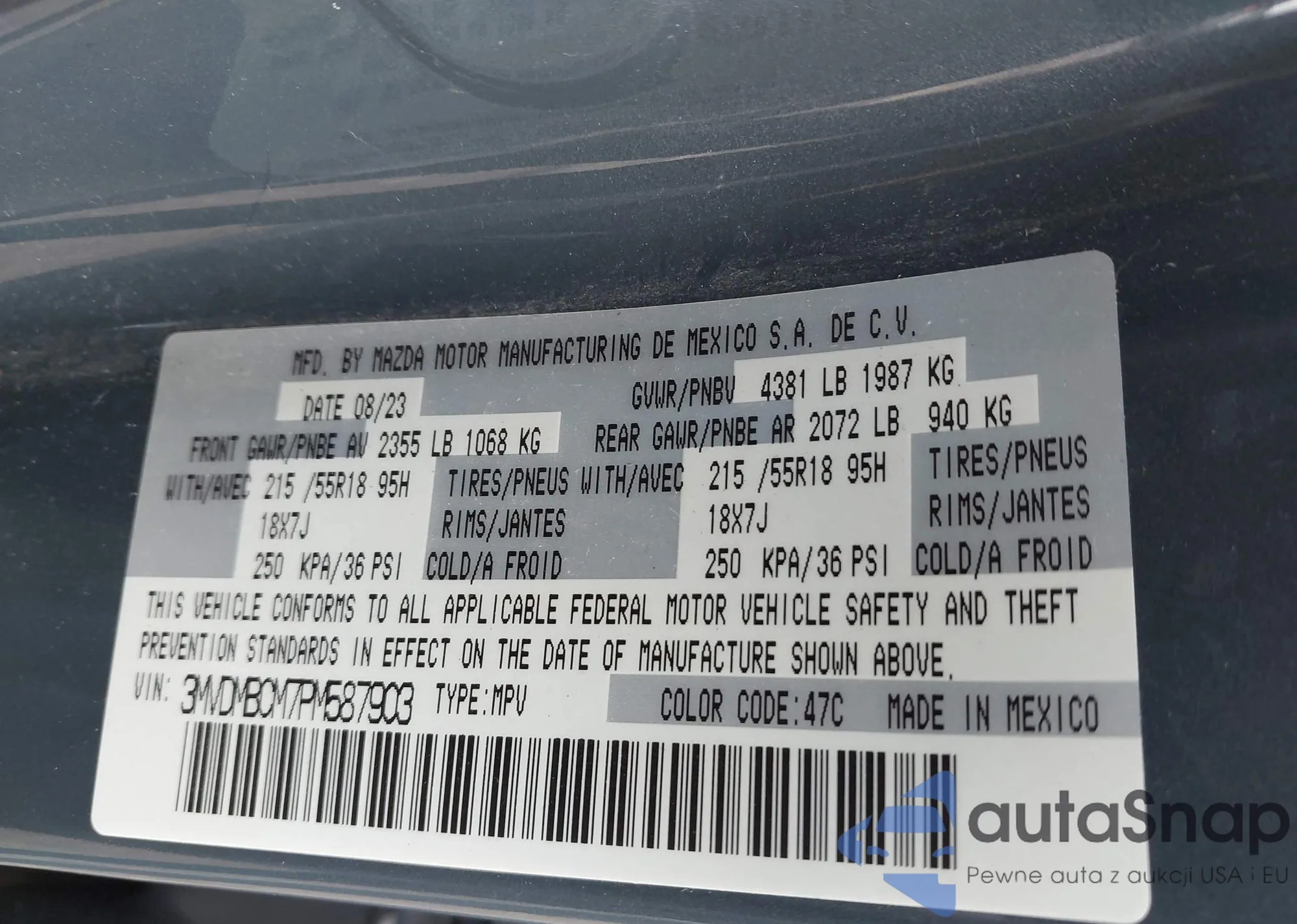 • VIN 3MVDMBCM7PM587903