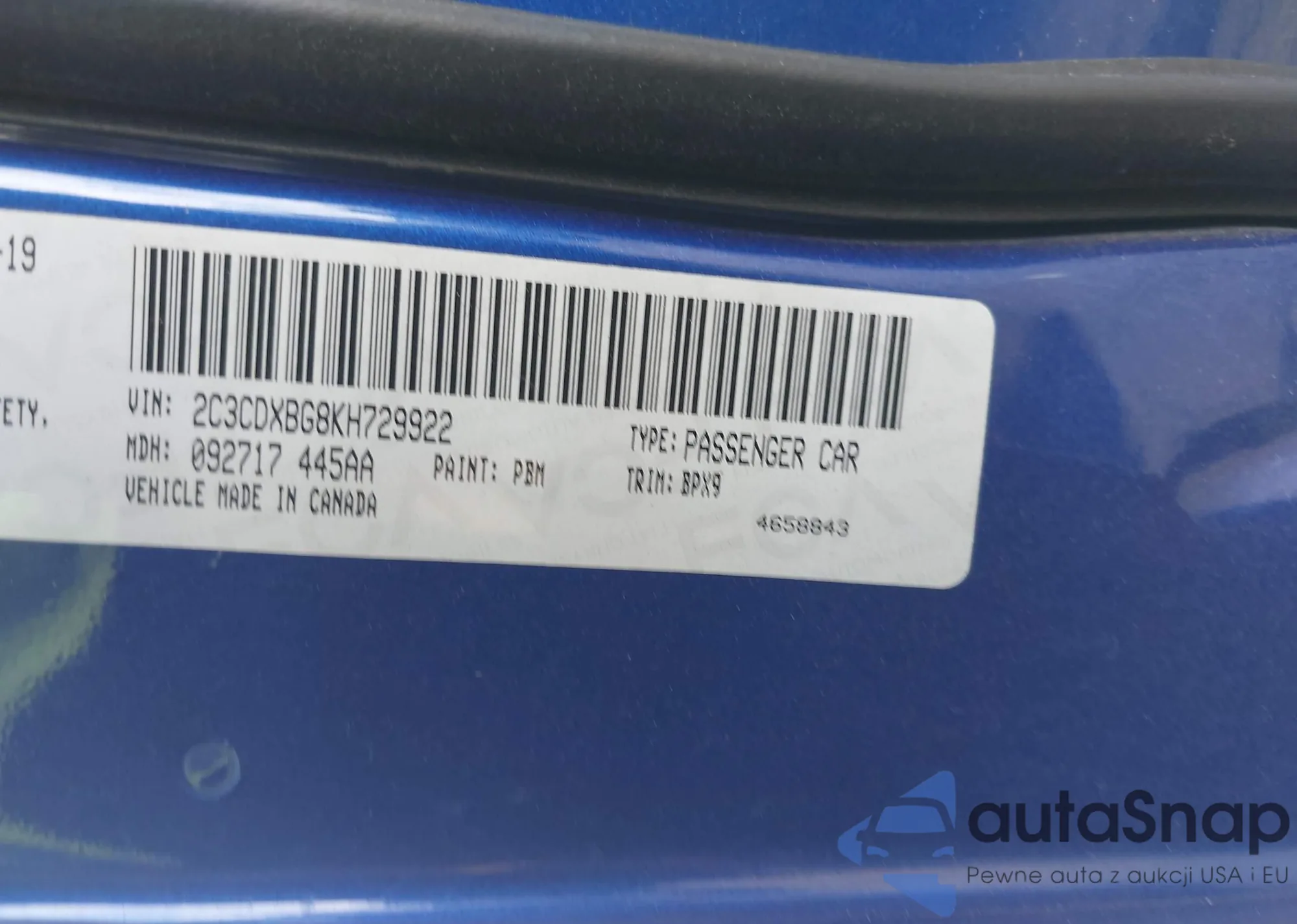 • VIN 2C3CDXBG8KH729922