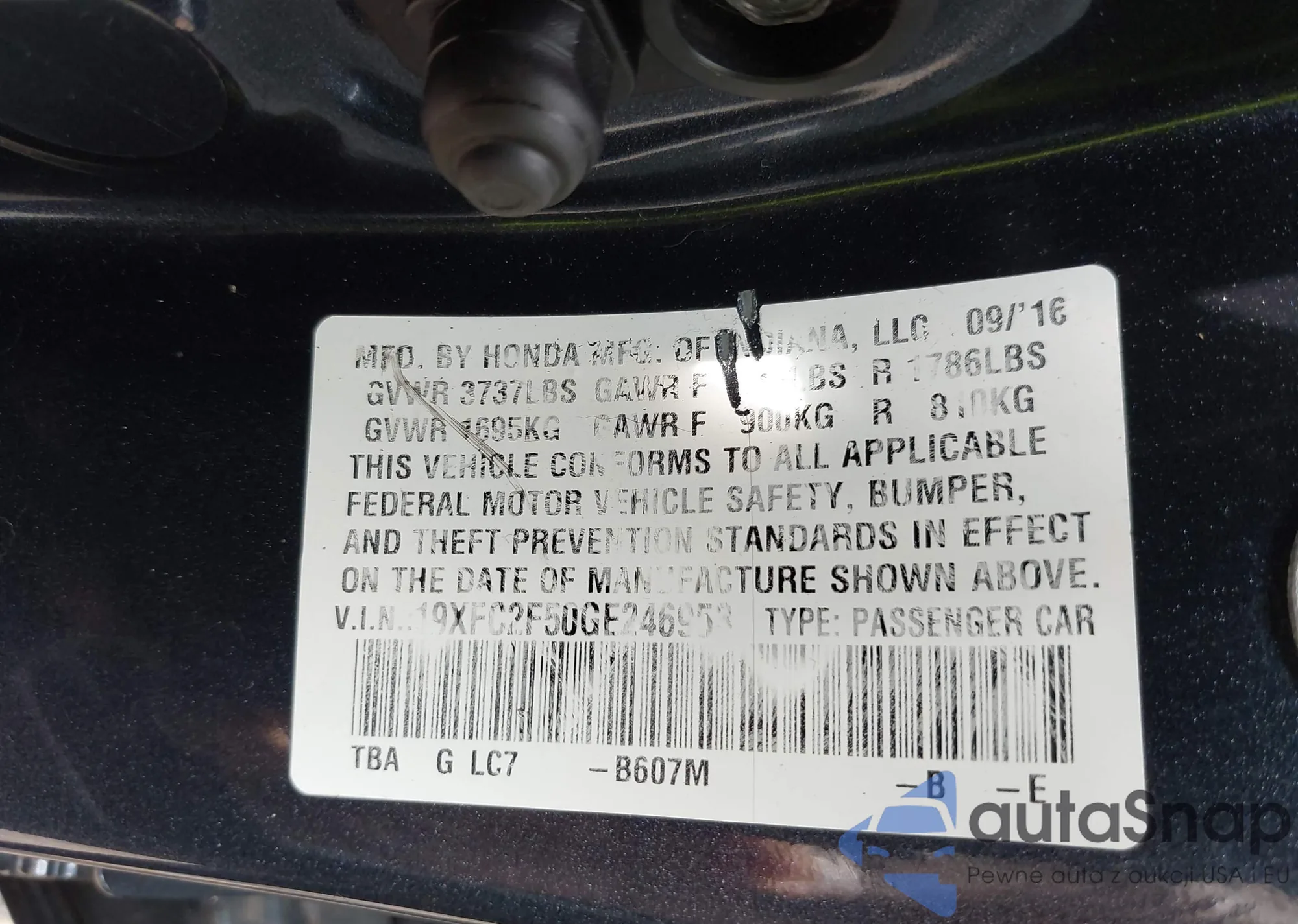 LOT: 42745365 VIN: 19XFB2F58FE090906