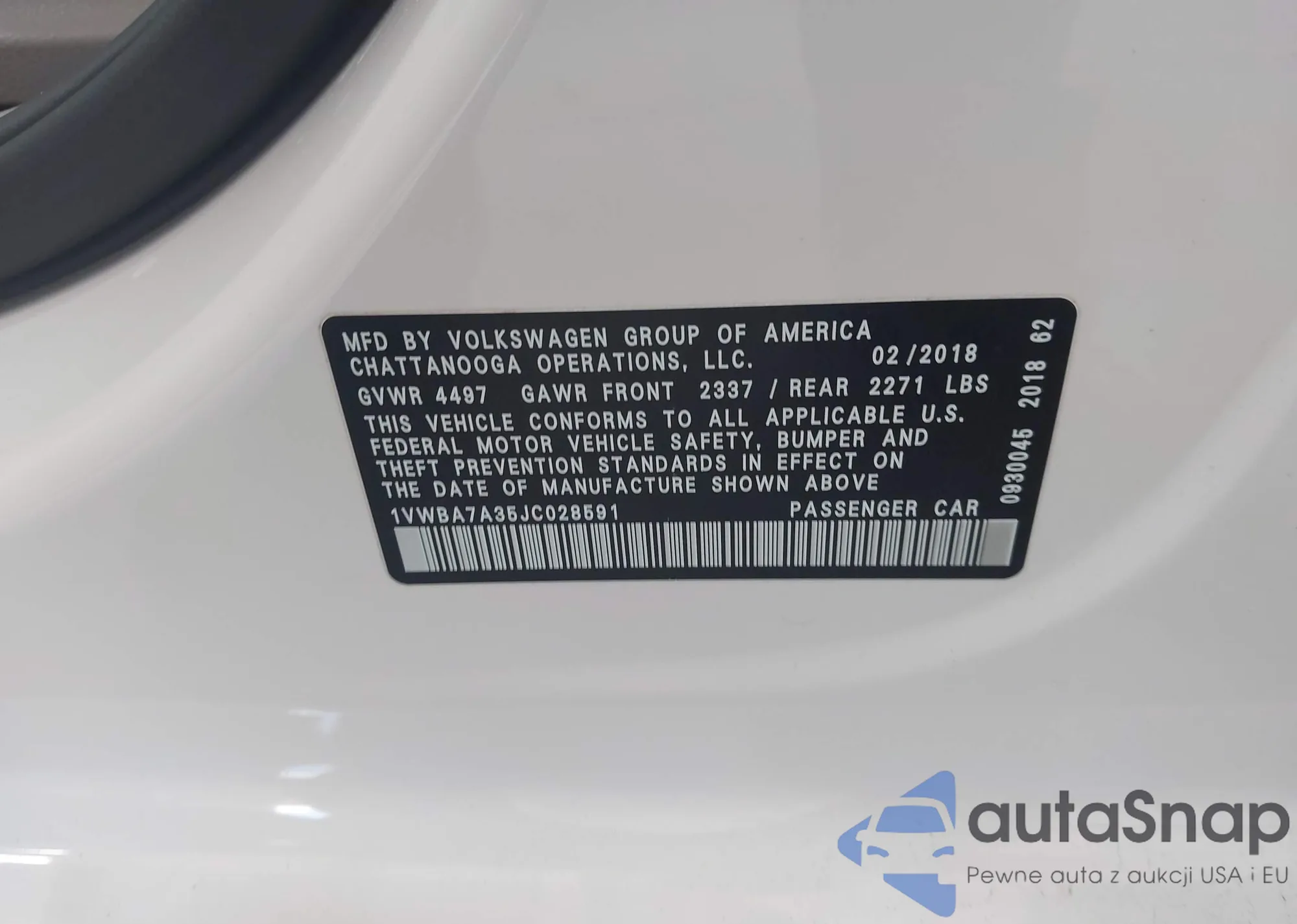 • VIN 1VWBA7A35JC028591