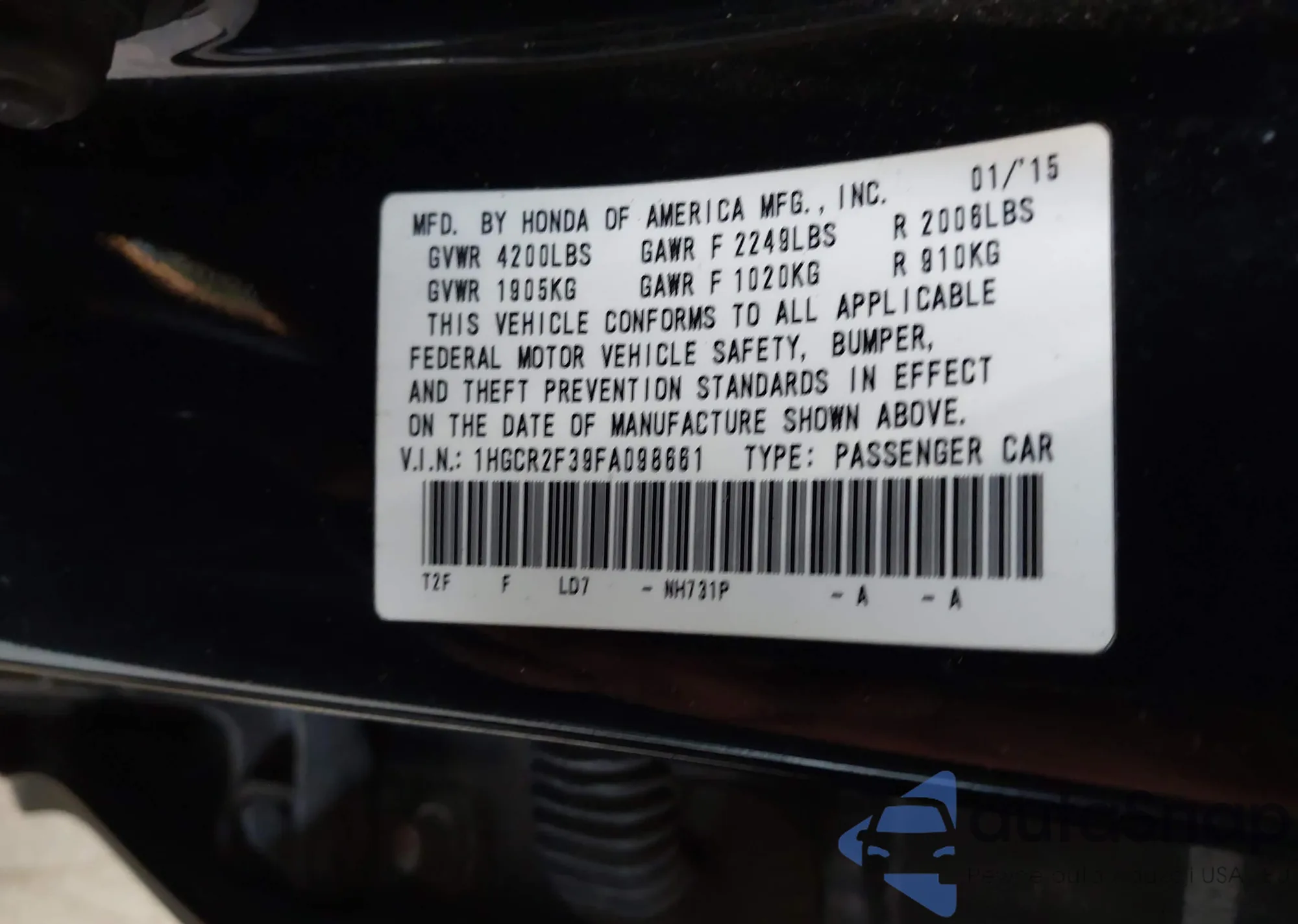 • VIN 1HGCR2F39FA098661