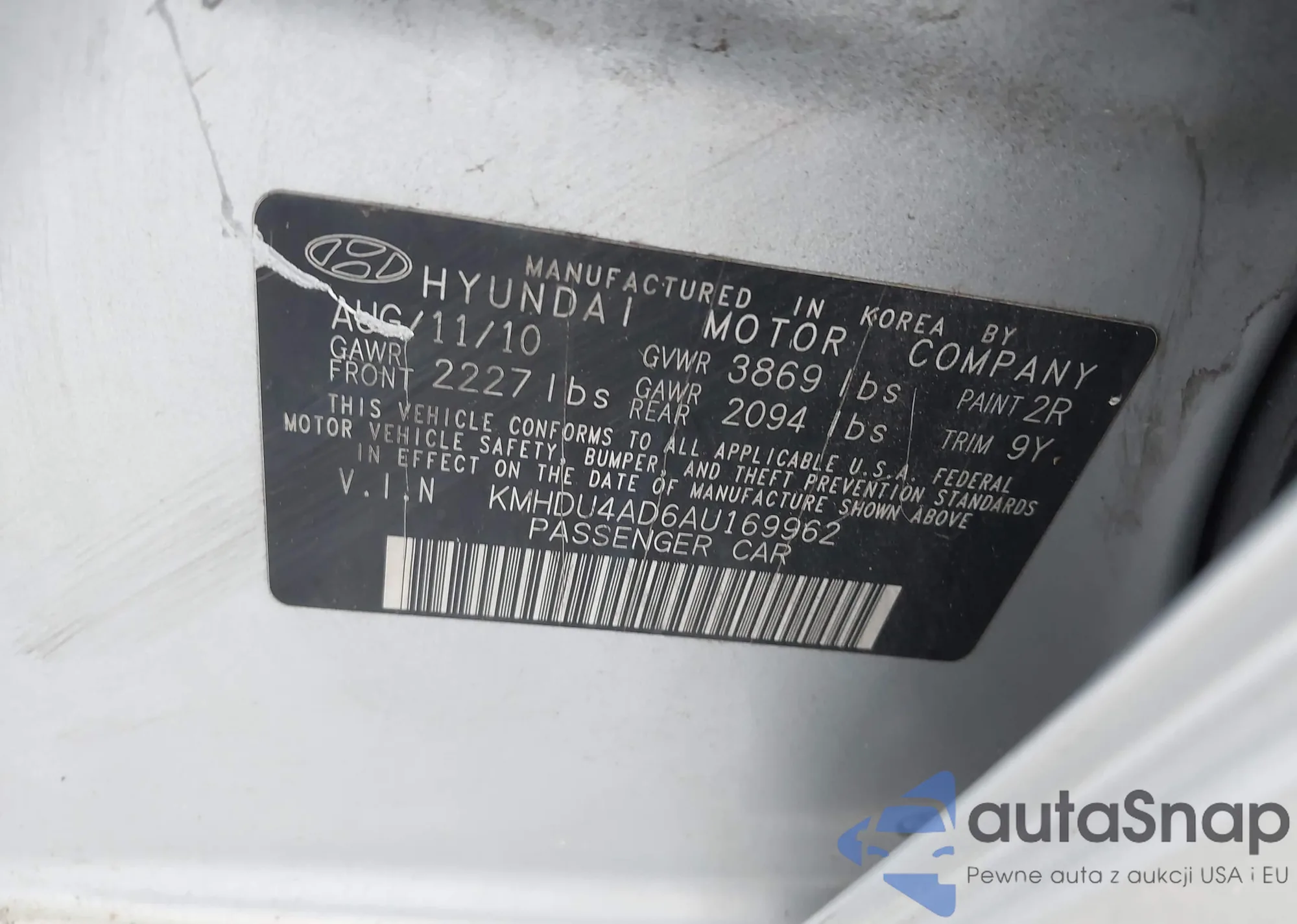 LOT: 42895845 VIN: KMHCM3AC4AU157001