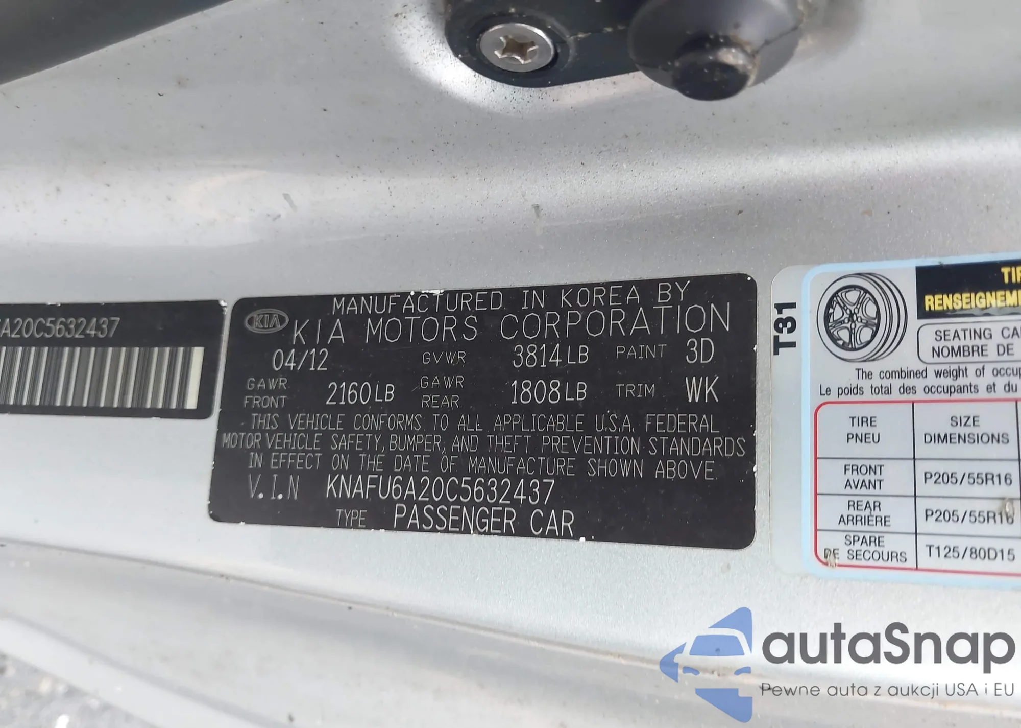 LOT: 42932203 VIN: KNAFU6A20C5632437