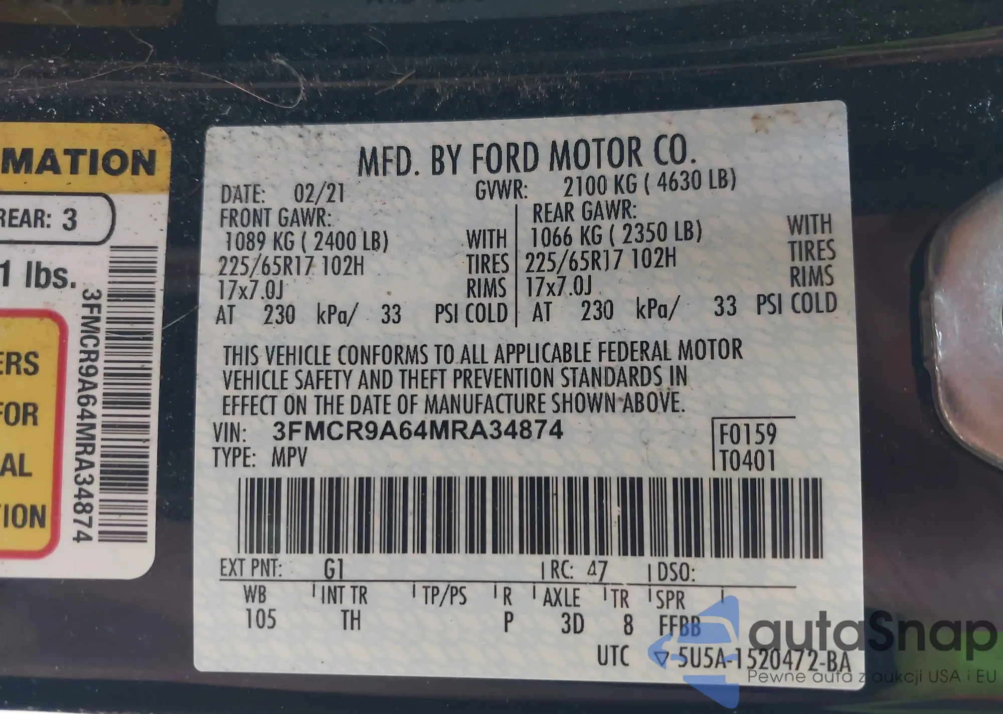 • VIN 3FMCR9A64MRA34874