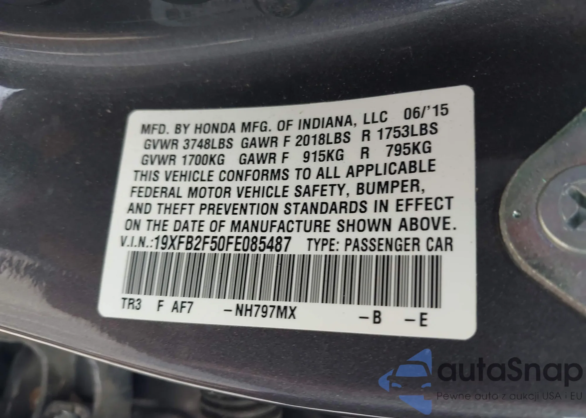 LOT: 42902798 VIN: 19XFB2F50FE085487