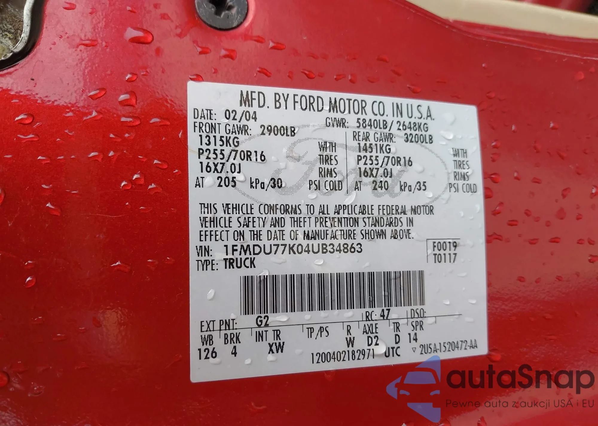 LOT: 42329874 VIN: 1FMDU77K04UB34863
