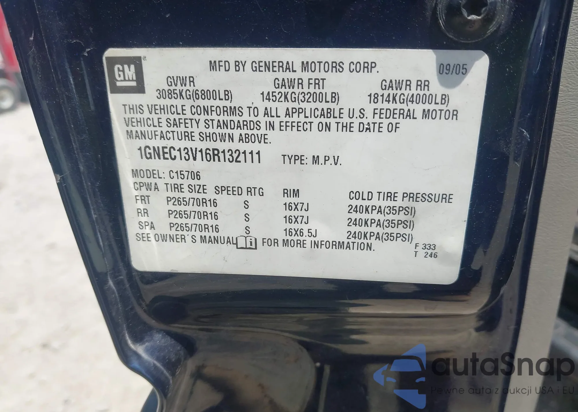 LOT: 42566124 VIN: 1GNEC13V16R132111