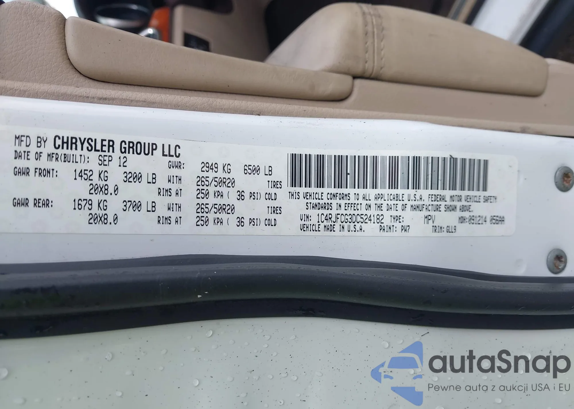 • VIN 1C4RJFCG3DC524182
