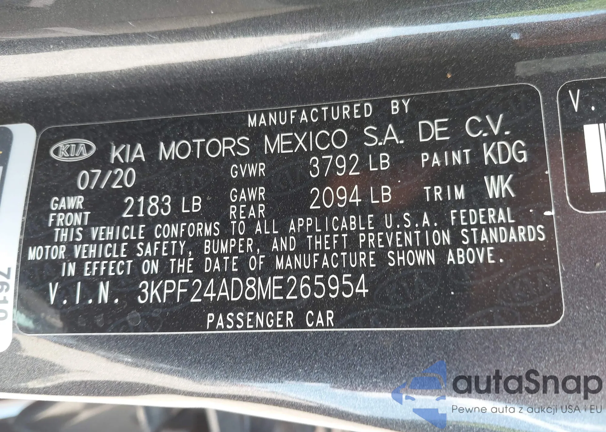 LOT: 42912037 VIN: KNAGM4A76F5537132