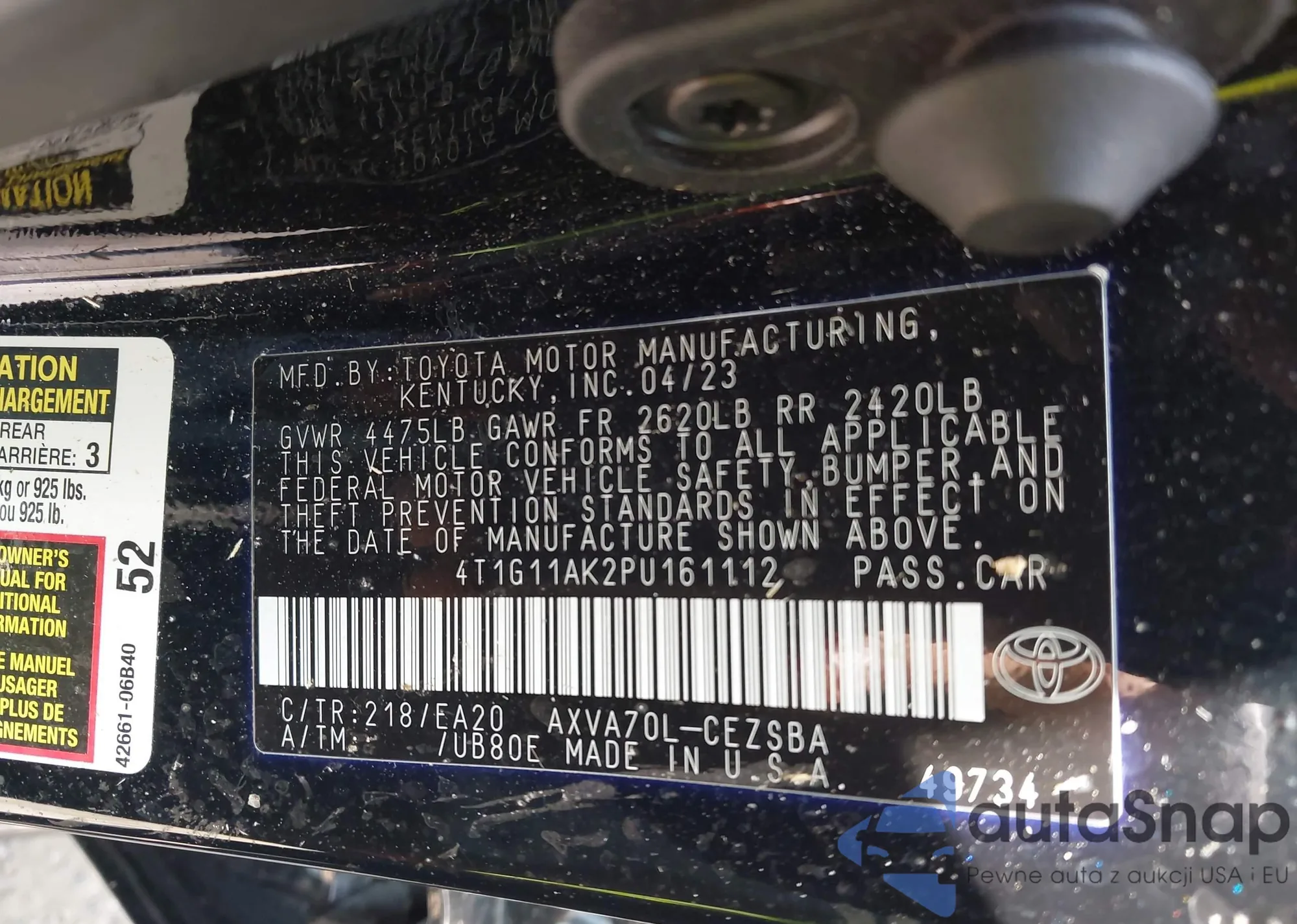 • VIN 4T1G11AK2PU161112