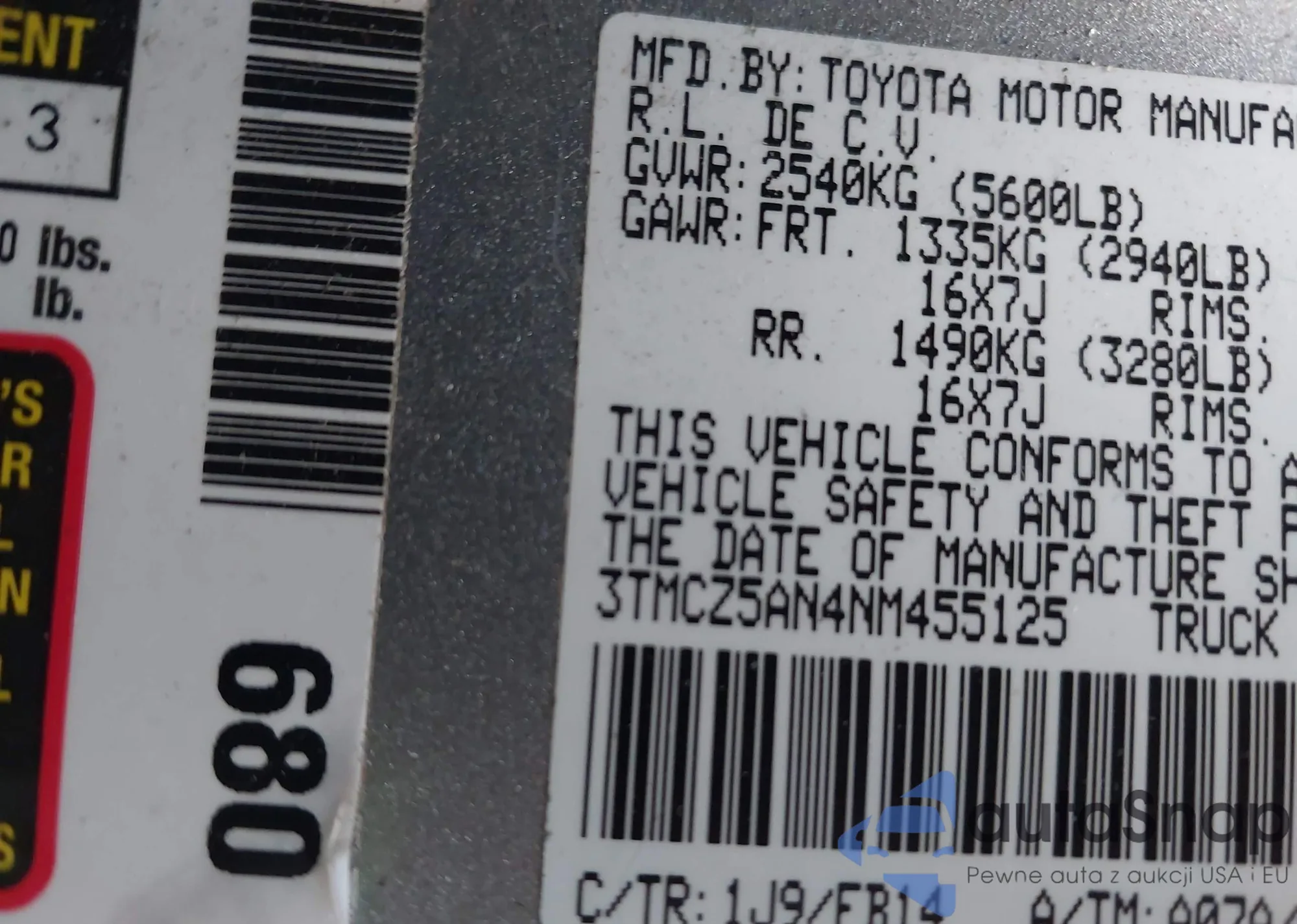 LOT: 41123797 VIN: 3TMCZ5AN4NM455125