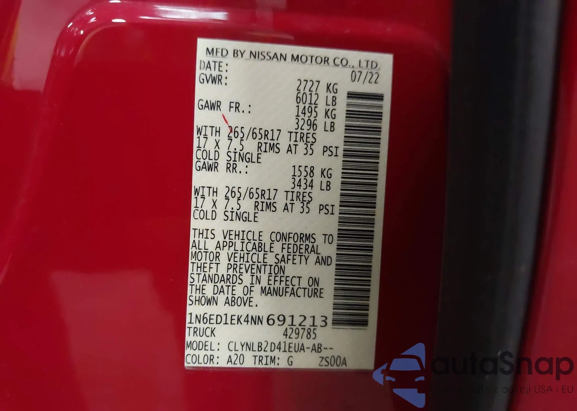 • VIN 1N6ED1EK4NN691213