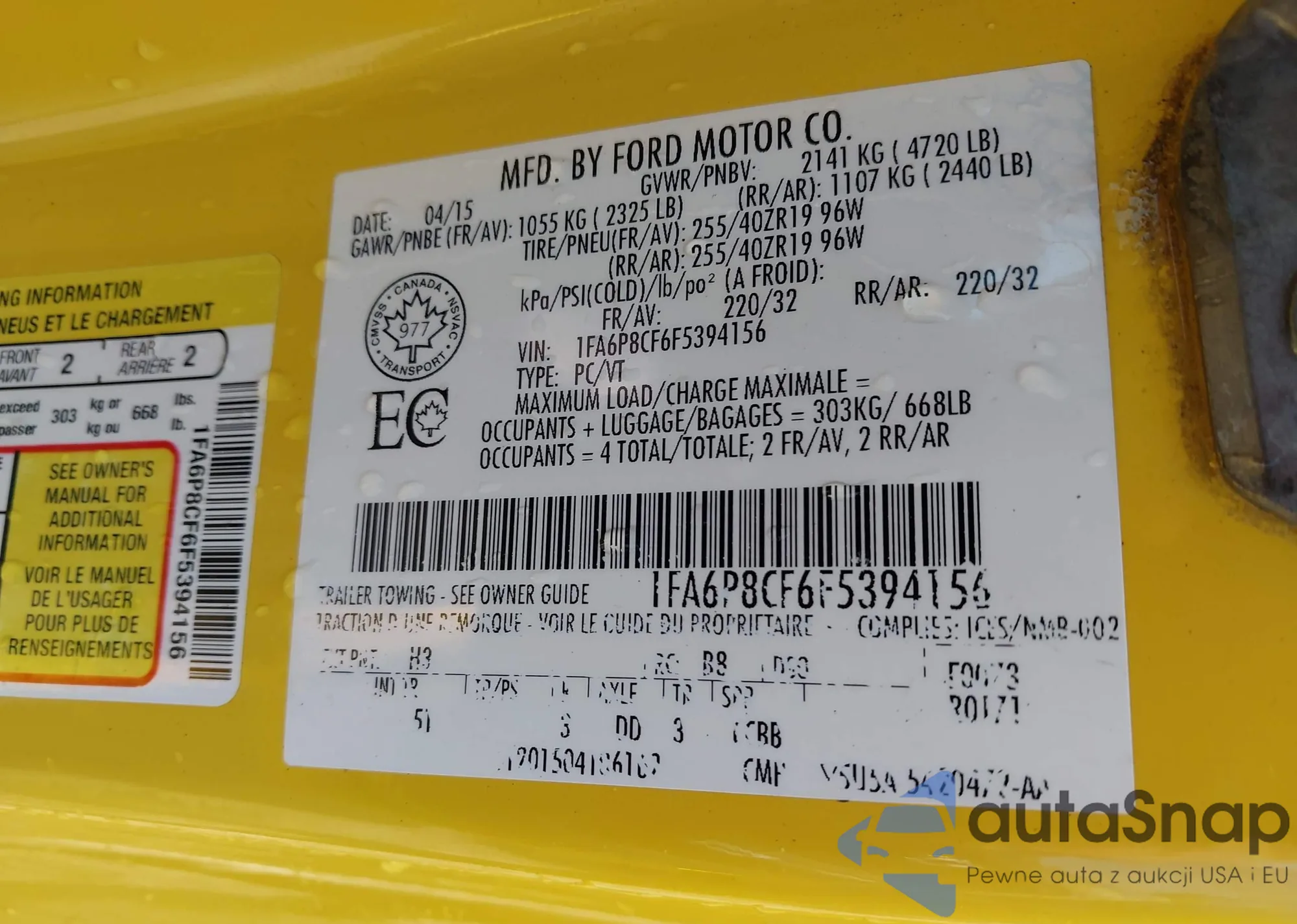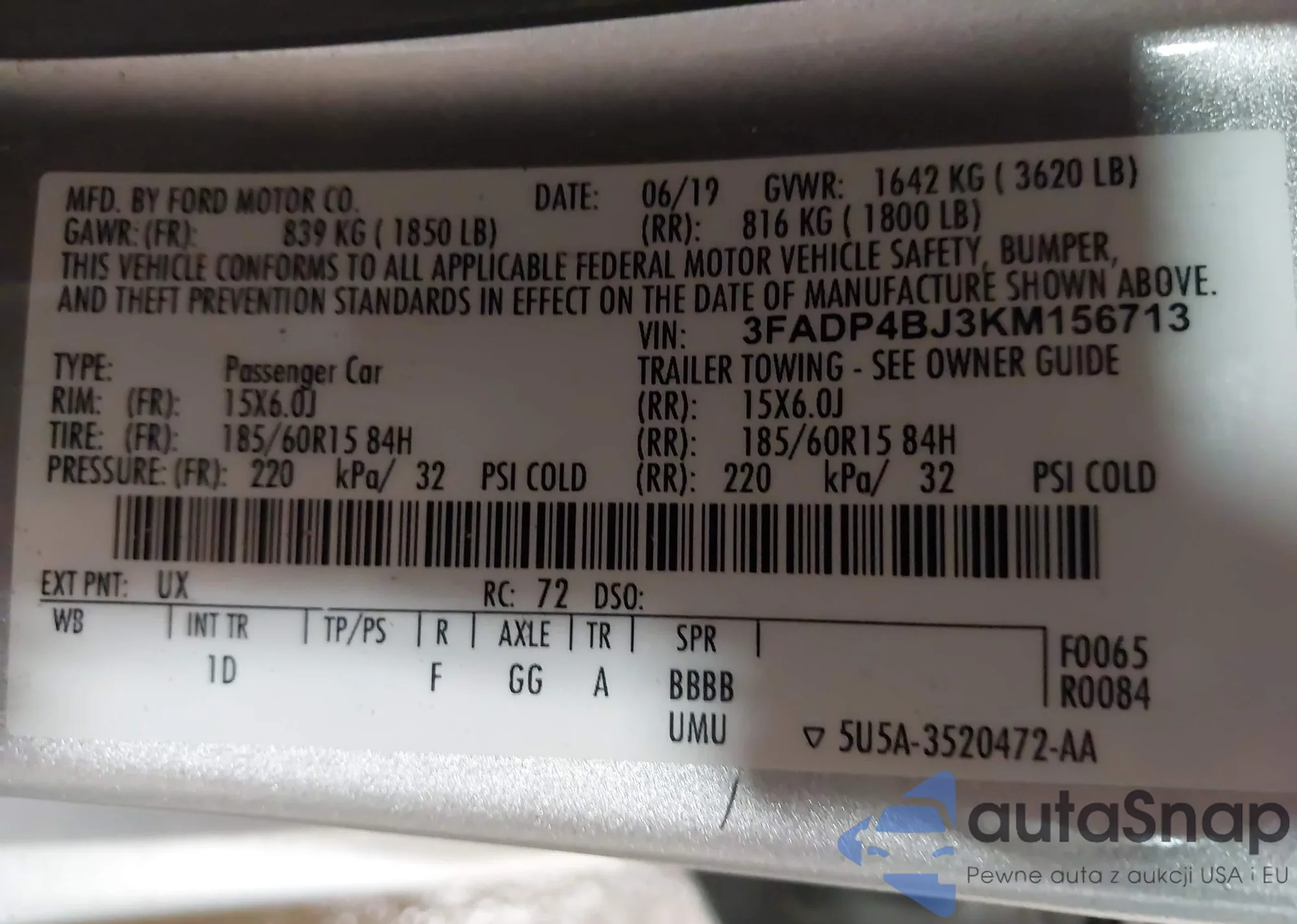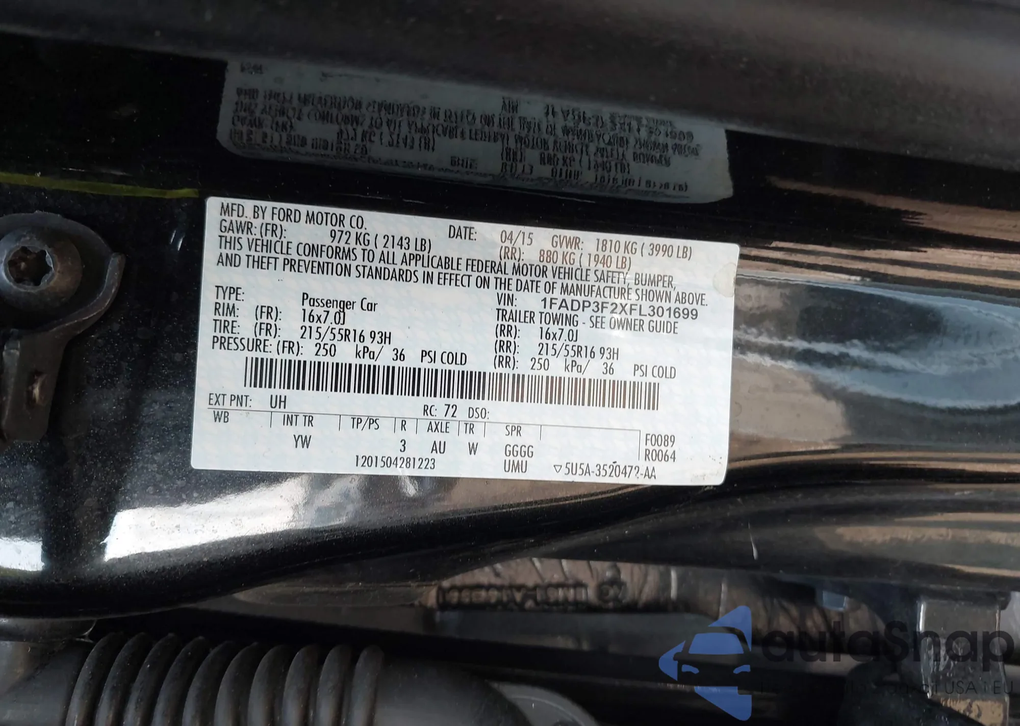 LOT: 42808501 VIN: 1FADP3F2XFL301699