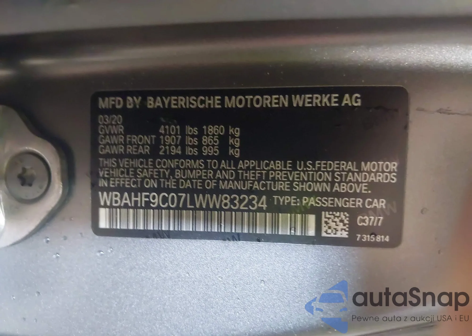 • VIN WBAHF9C07LWW83234