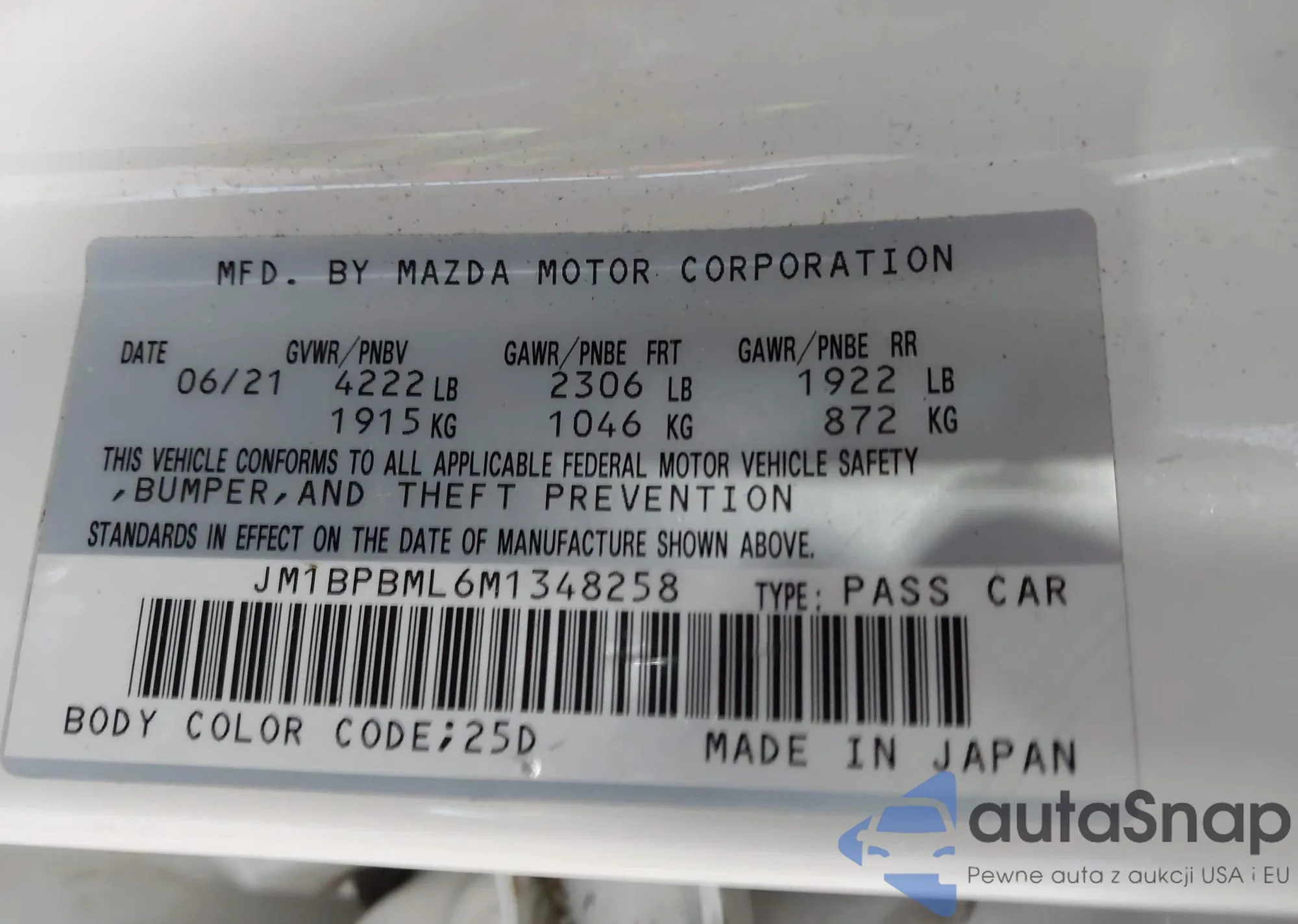 LOT: 42752477 VIN: JM1BPBML6M1348258
