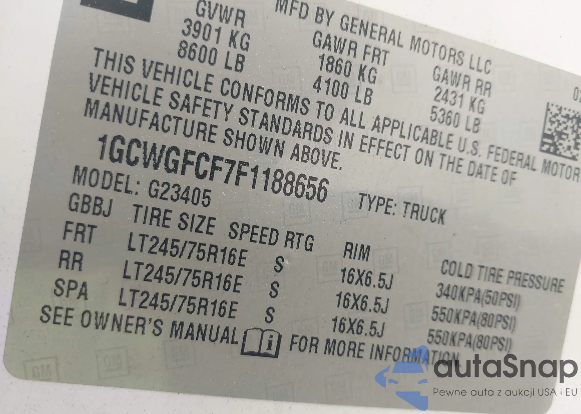 • VIN 1GCWGFCF7F1188656