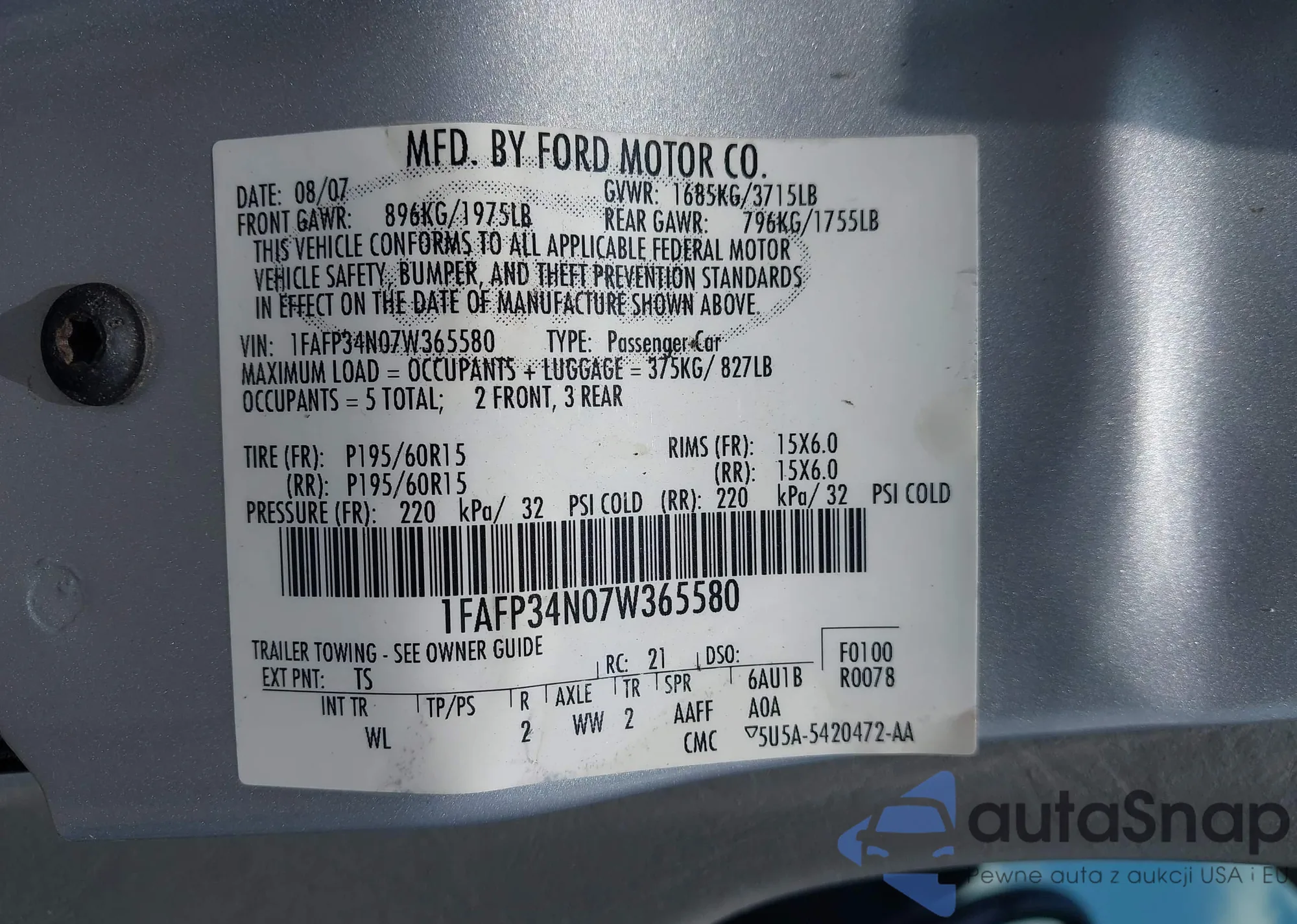 • VIN 1FAFP34N07W365580