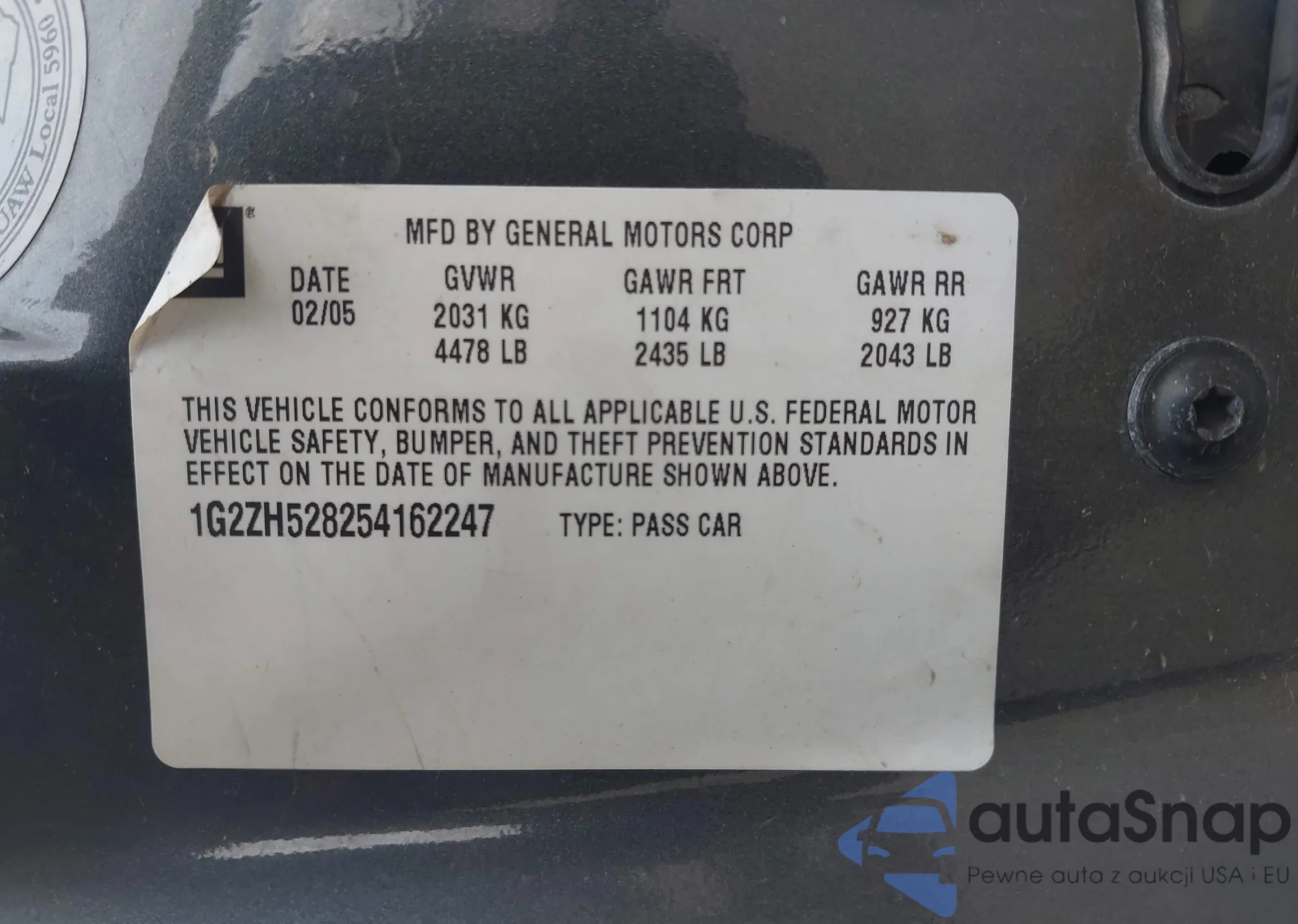 • VIN 1G2ZH528254162247