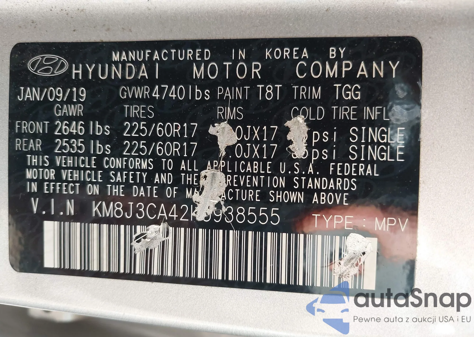 • VIN KM8J3CA42KU938555