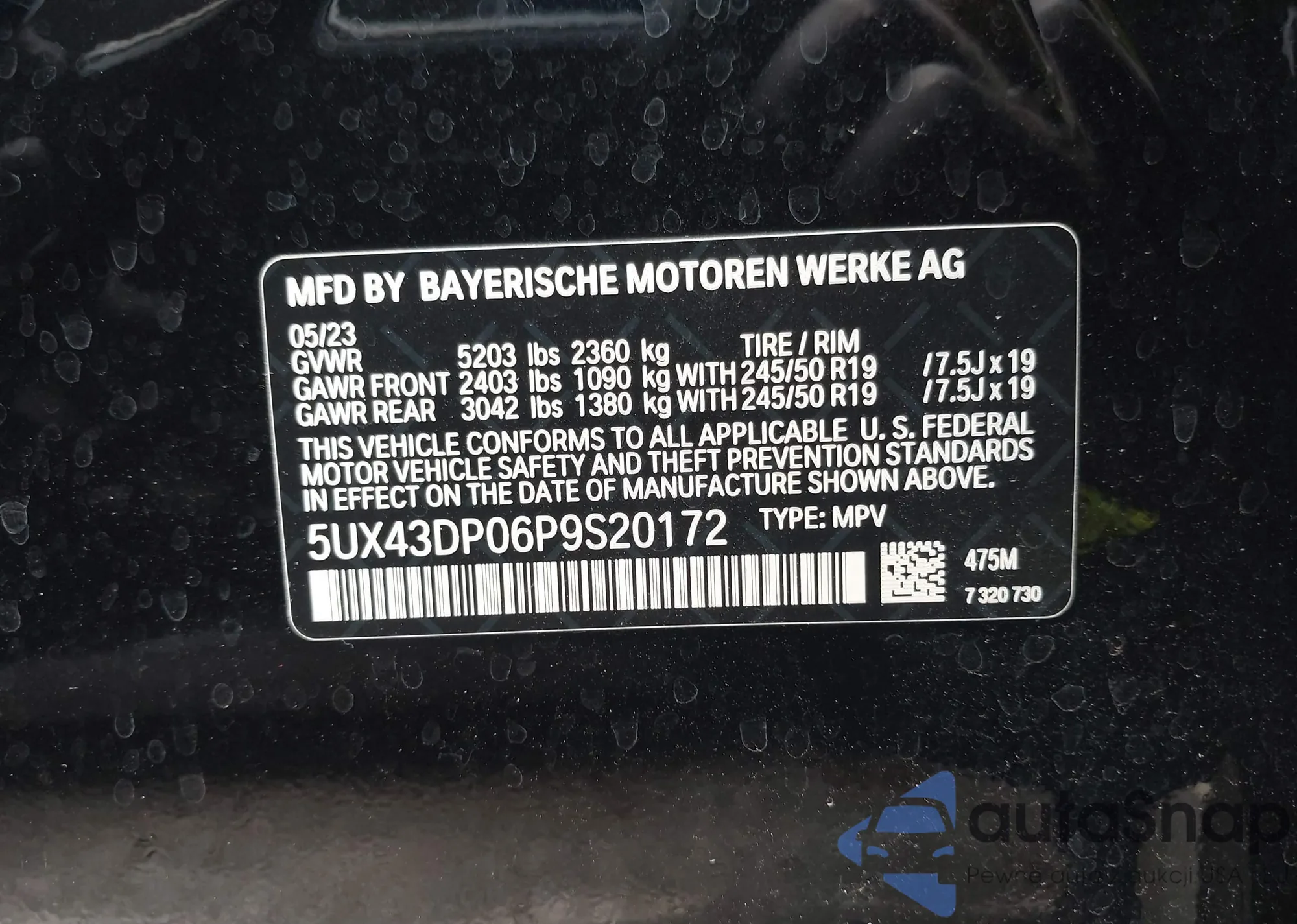 • VIN 5UX43DP06P9S20172
