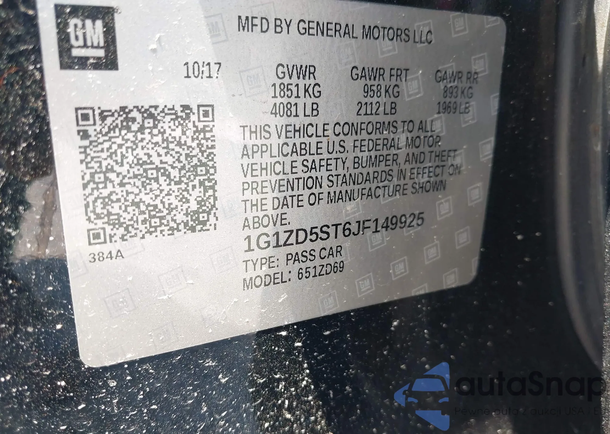 • VIN 1G1ZD5ST6JF149925