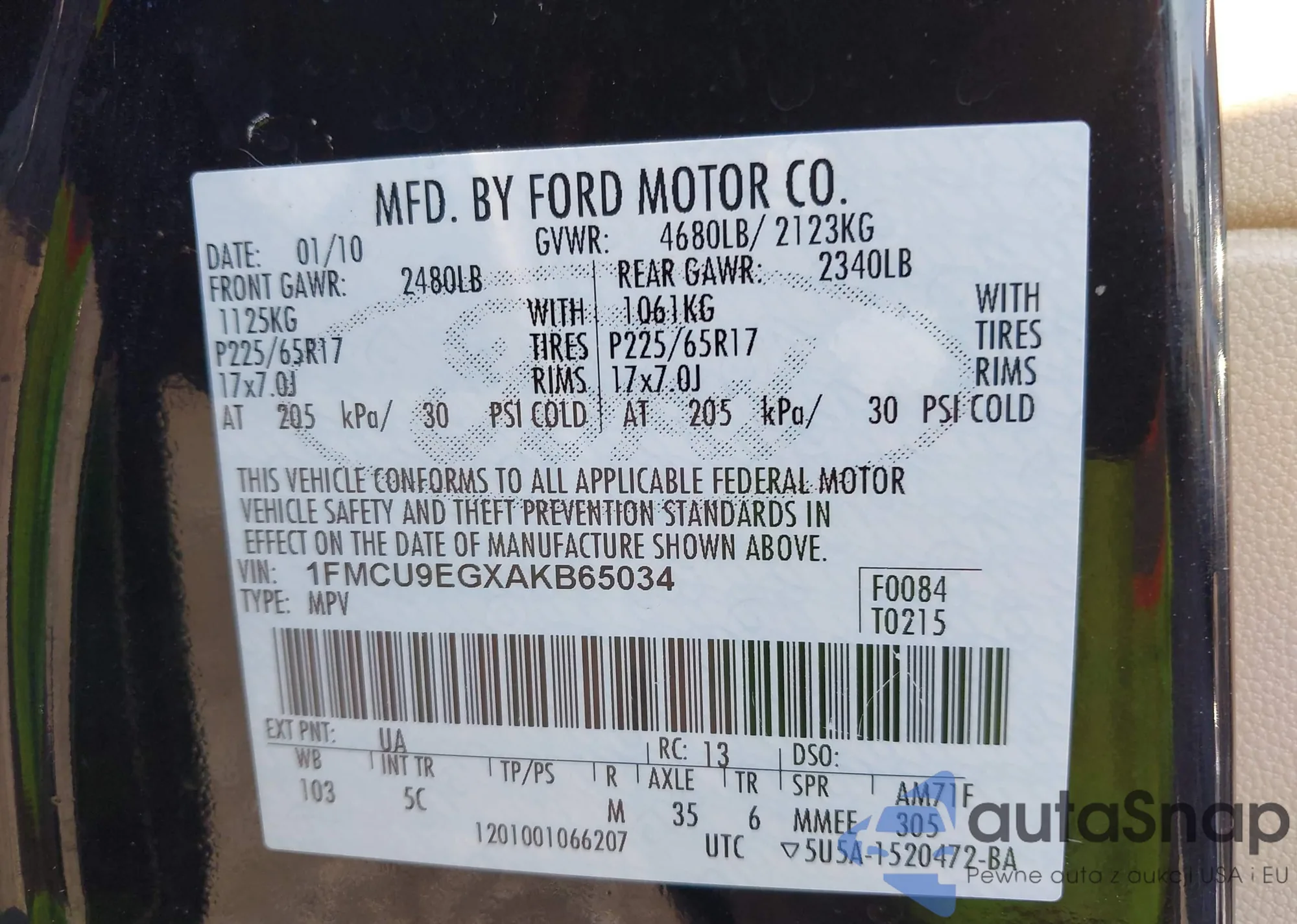 LOT: 42937594 VIN: 3FMCR9C61MRB39501