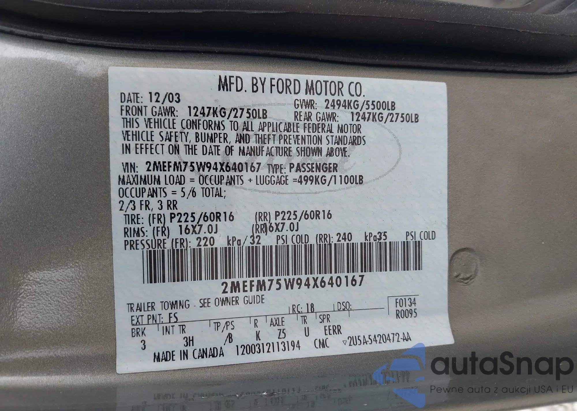 LOT: 42915059 VIN: 2MEFM75W94X640167