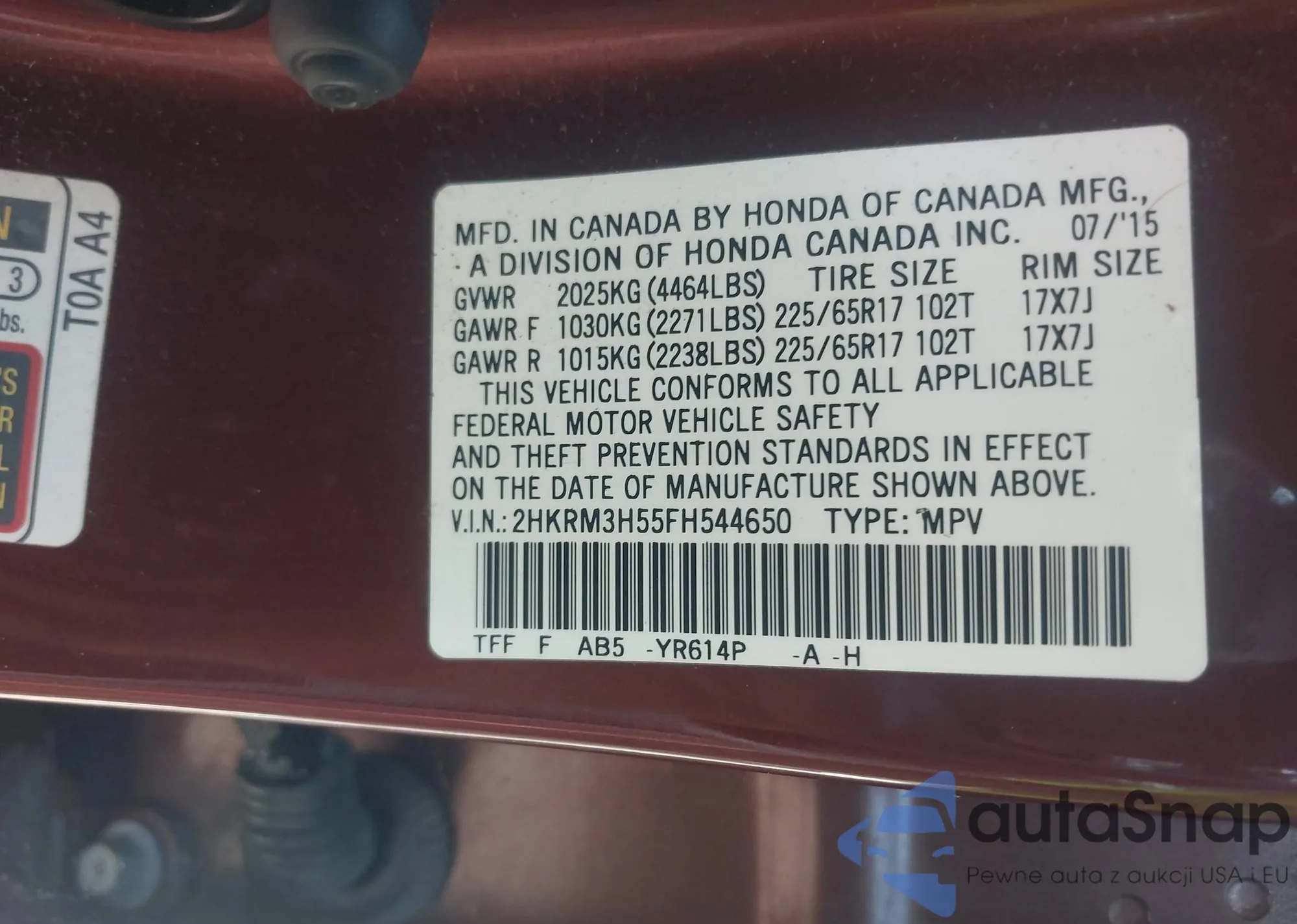 • VIN 5TDJZRFH3HS437401