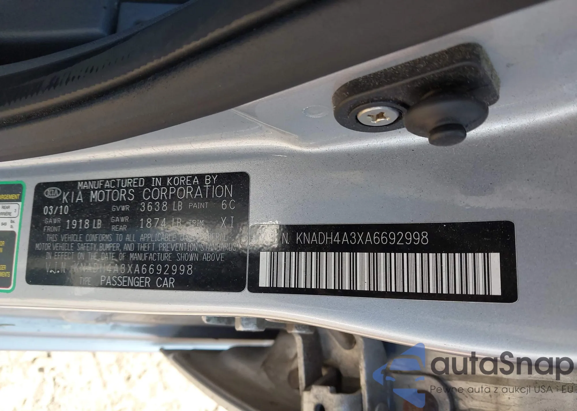 LOT: 42965488 VIN: KNADH4A3XA6692998