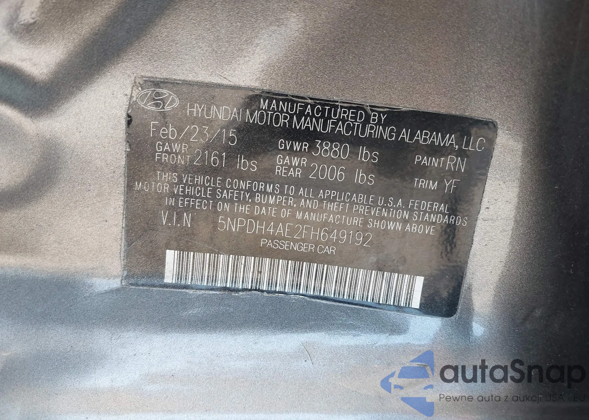 LOT: 42641277 VIN: 5NPDH4AE2FH649192