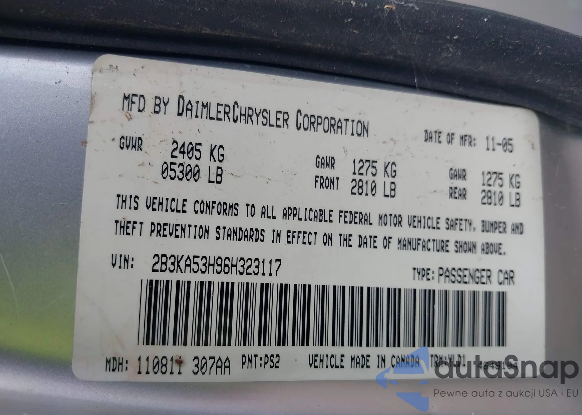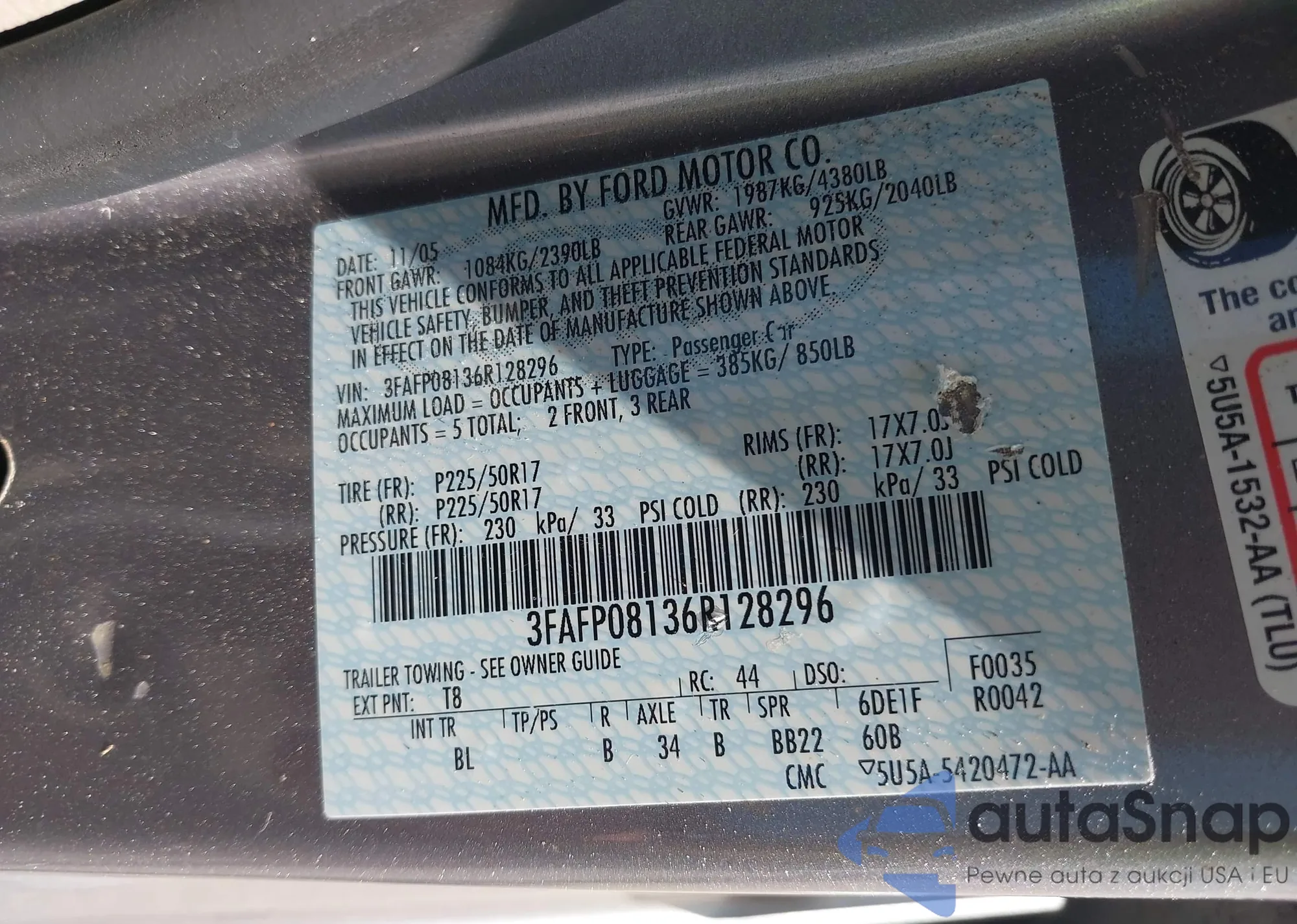LOT: 42157377 VIN: 3FAFP08136R128296