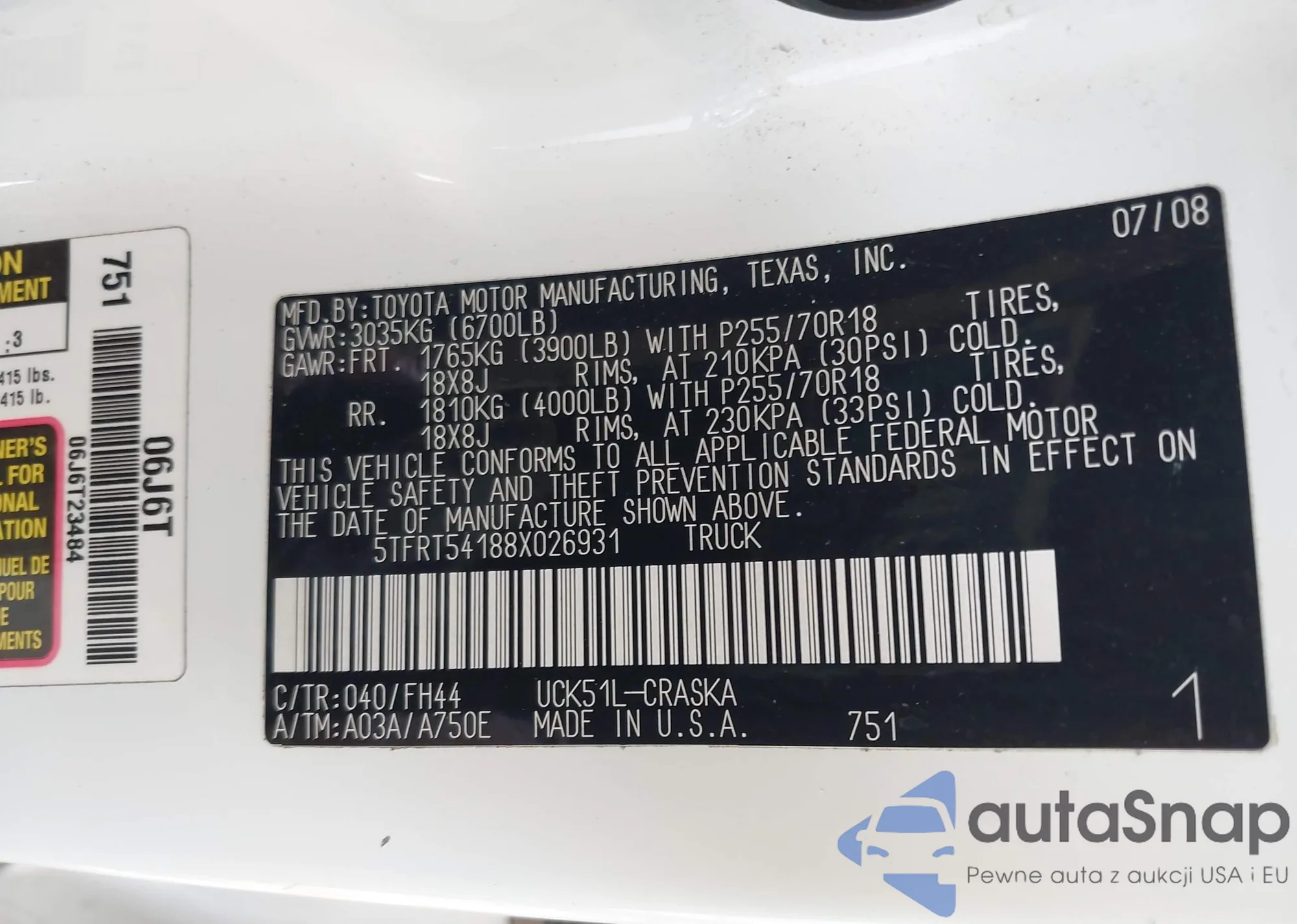 LOT: 42814942 VIN: 5TFRT54188X026931